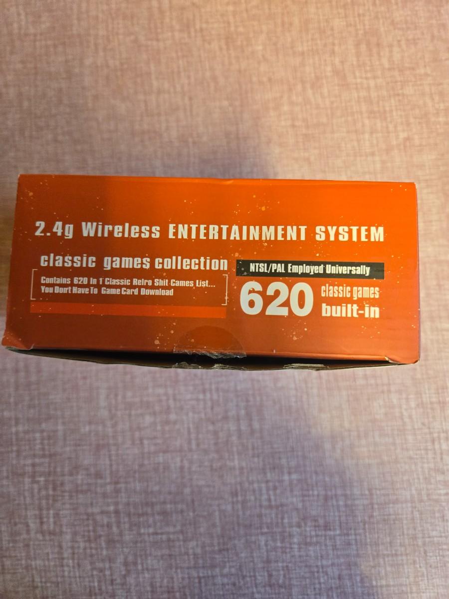 2.4 wireless entertainment system, like new. Looks like the original but small & all 620 games are built in.