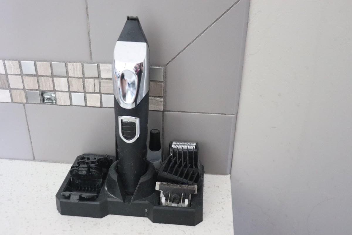 A convenient wireless trimmer designed for maintaining facial hair and body grooming, featuring rechargeable batteries for portable use.