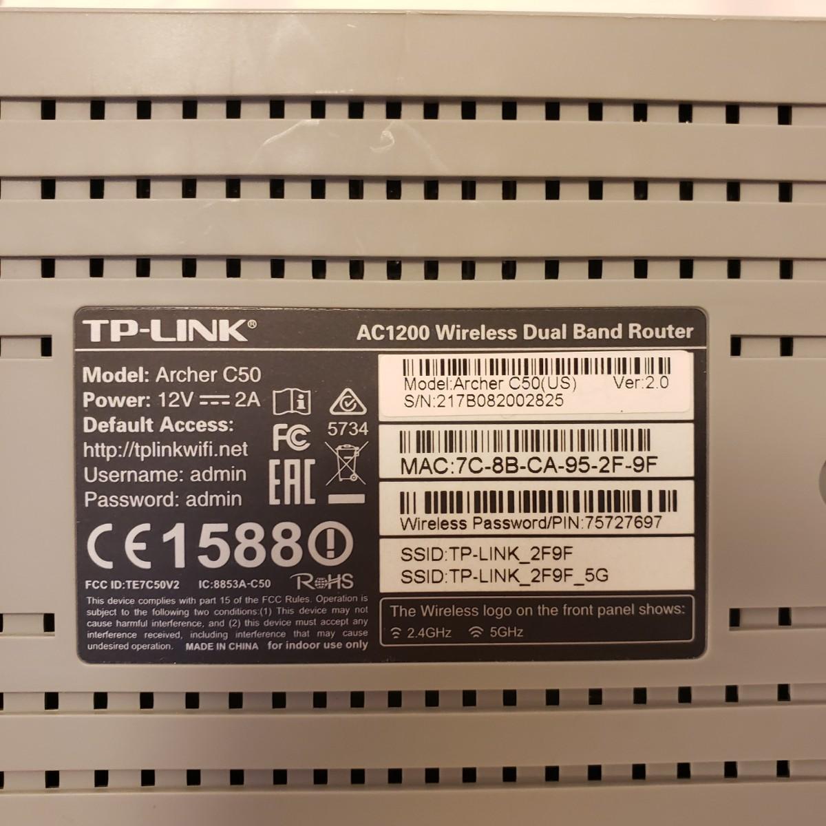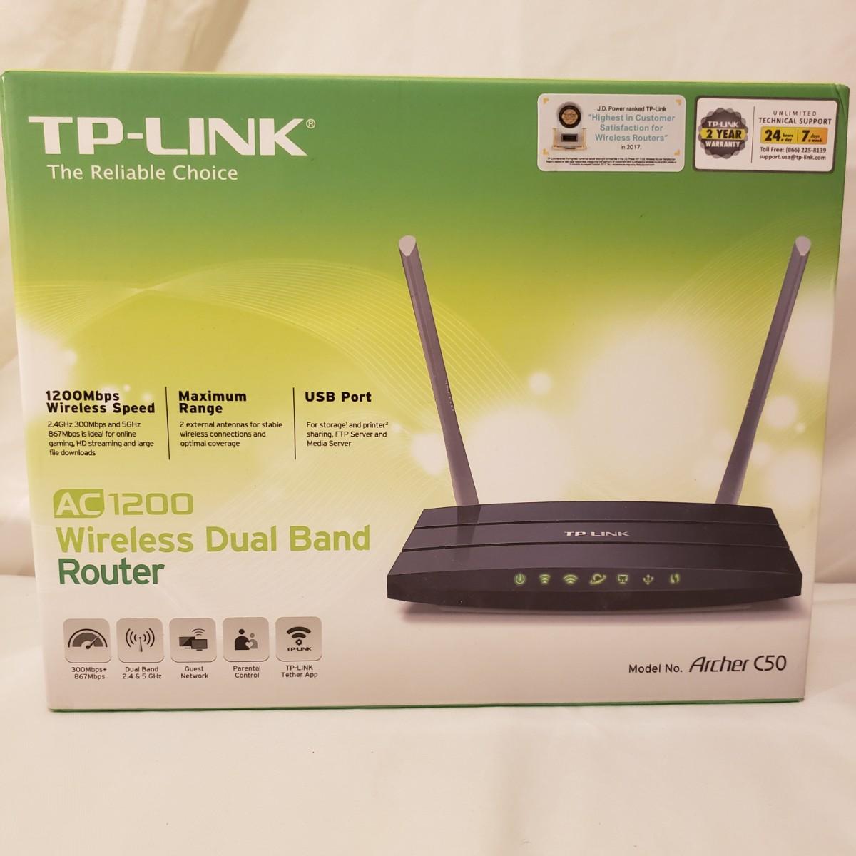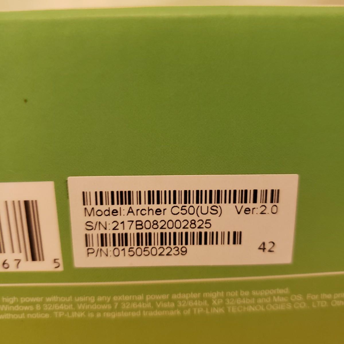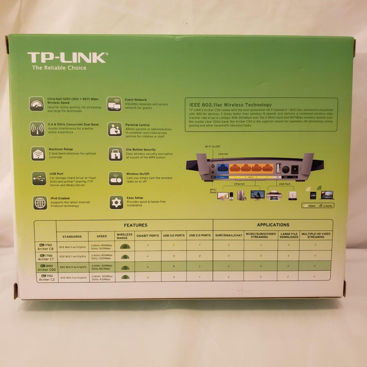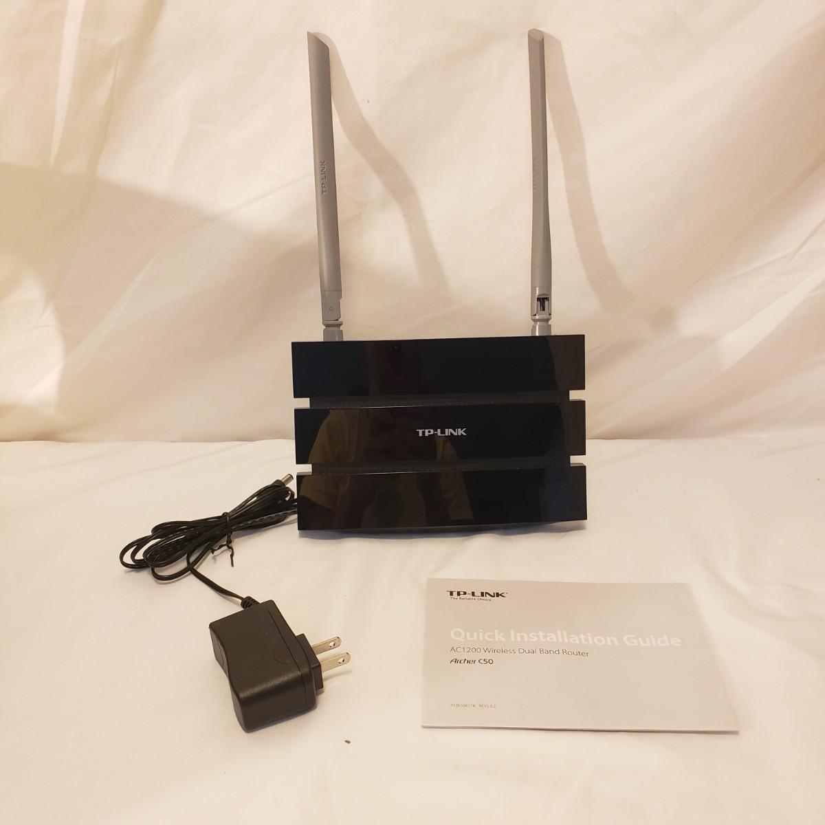 The TP-Link AC1200 is a wireless dual band router. The model number is Archer C50.