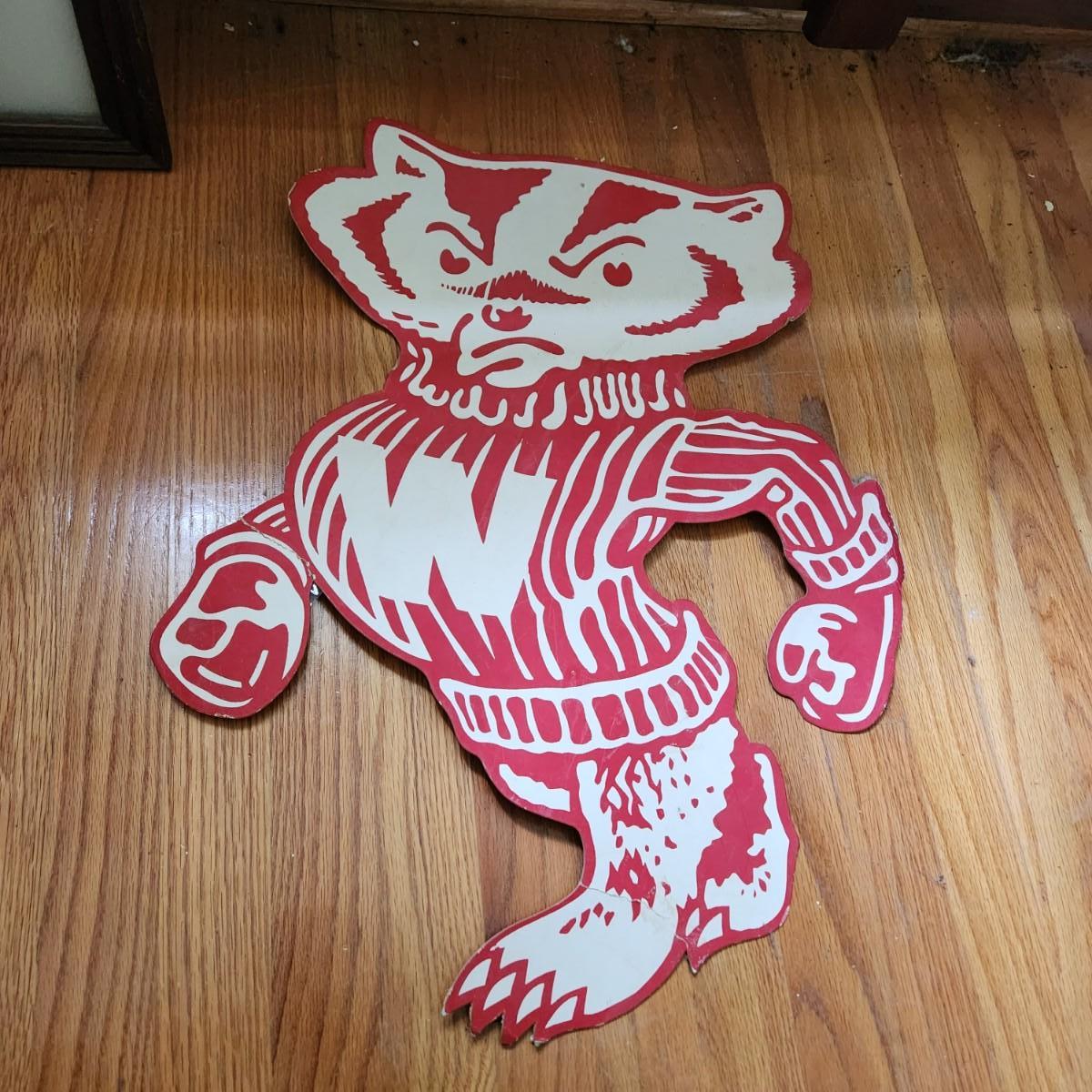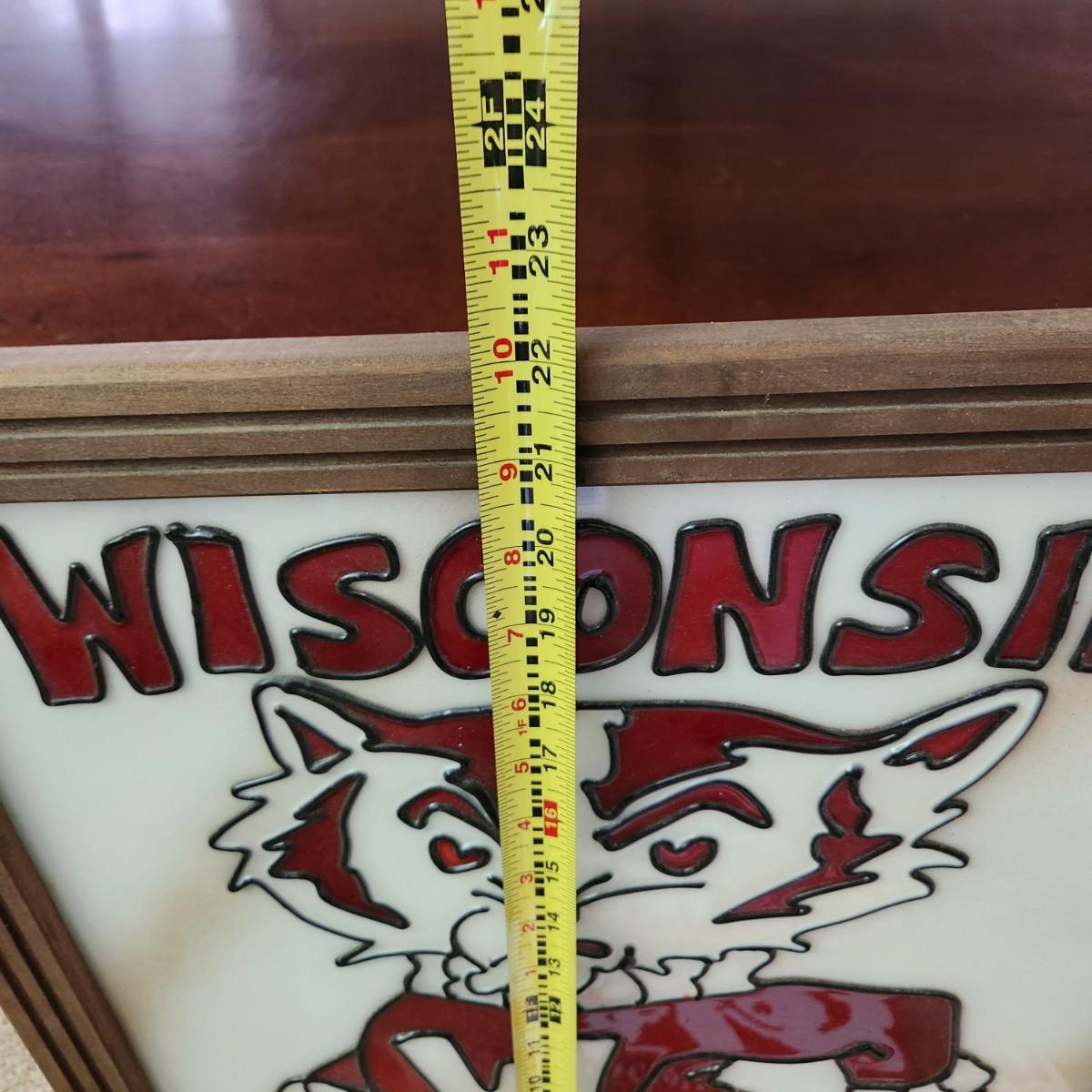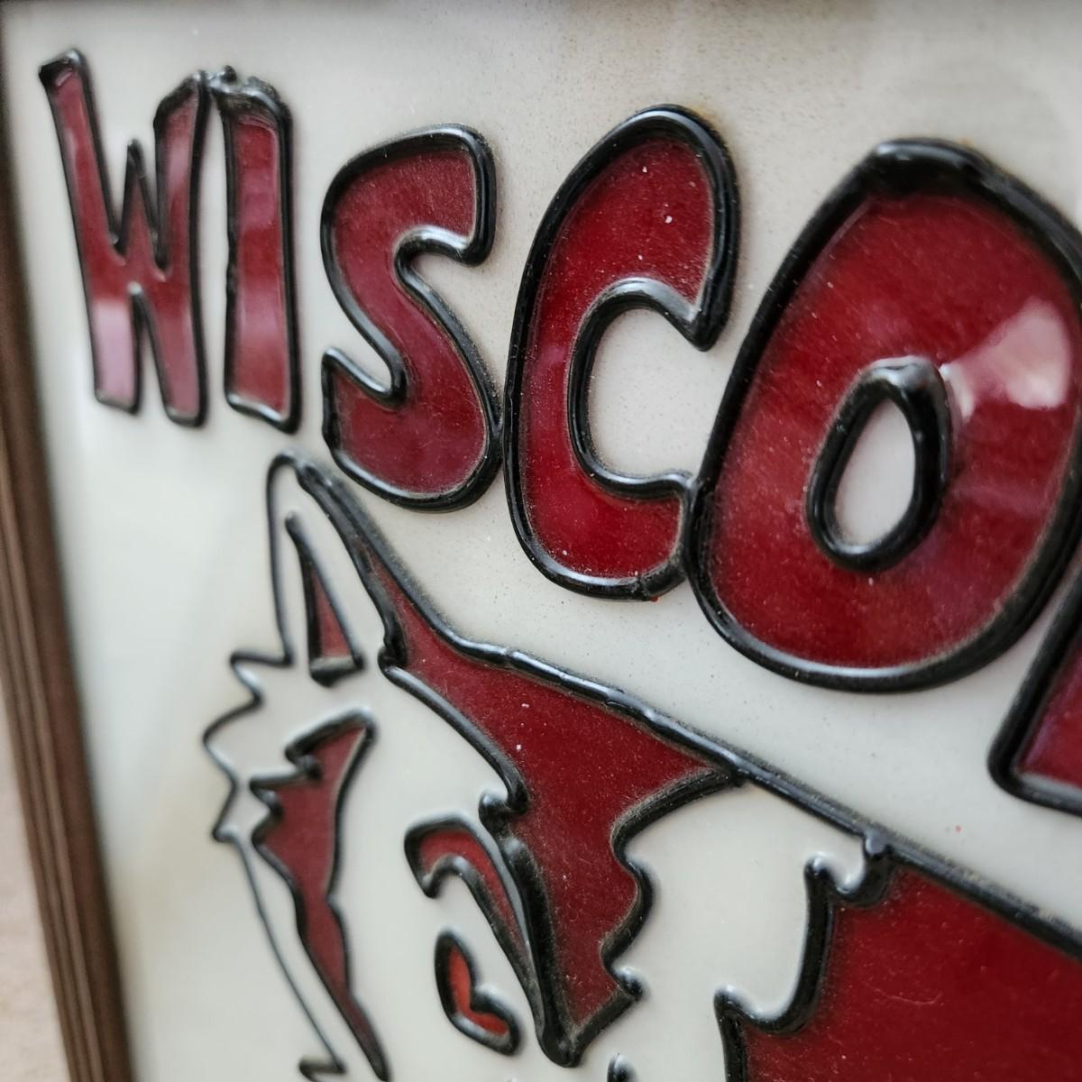 Wisconsin Badgers 2 Cardboard , 1 Glass Framed Art, license Plate Cover