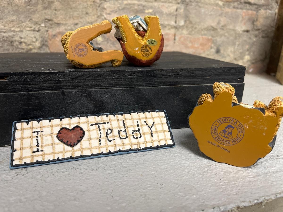 Lulu from the Hats for Teddy series, Mary Jo from the Reading with Teddy series, and Nita & nameplate