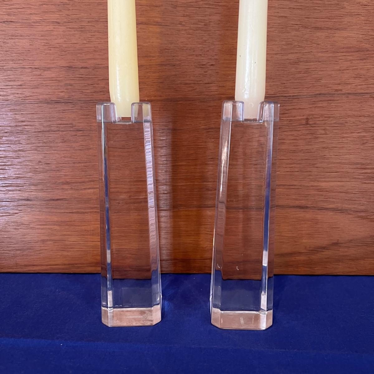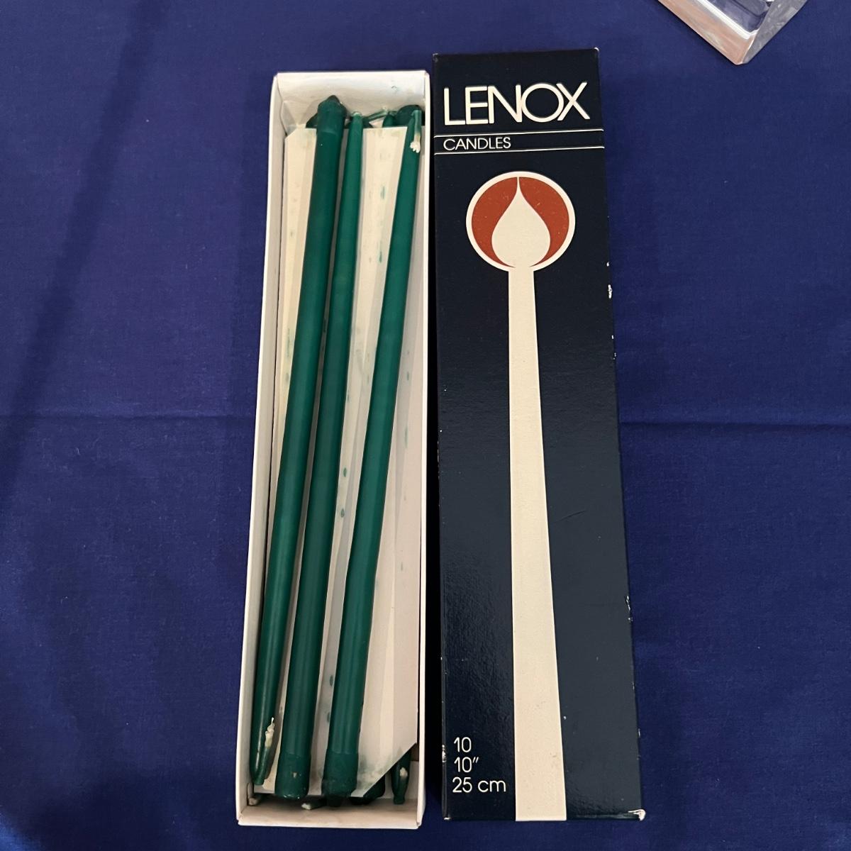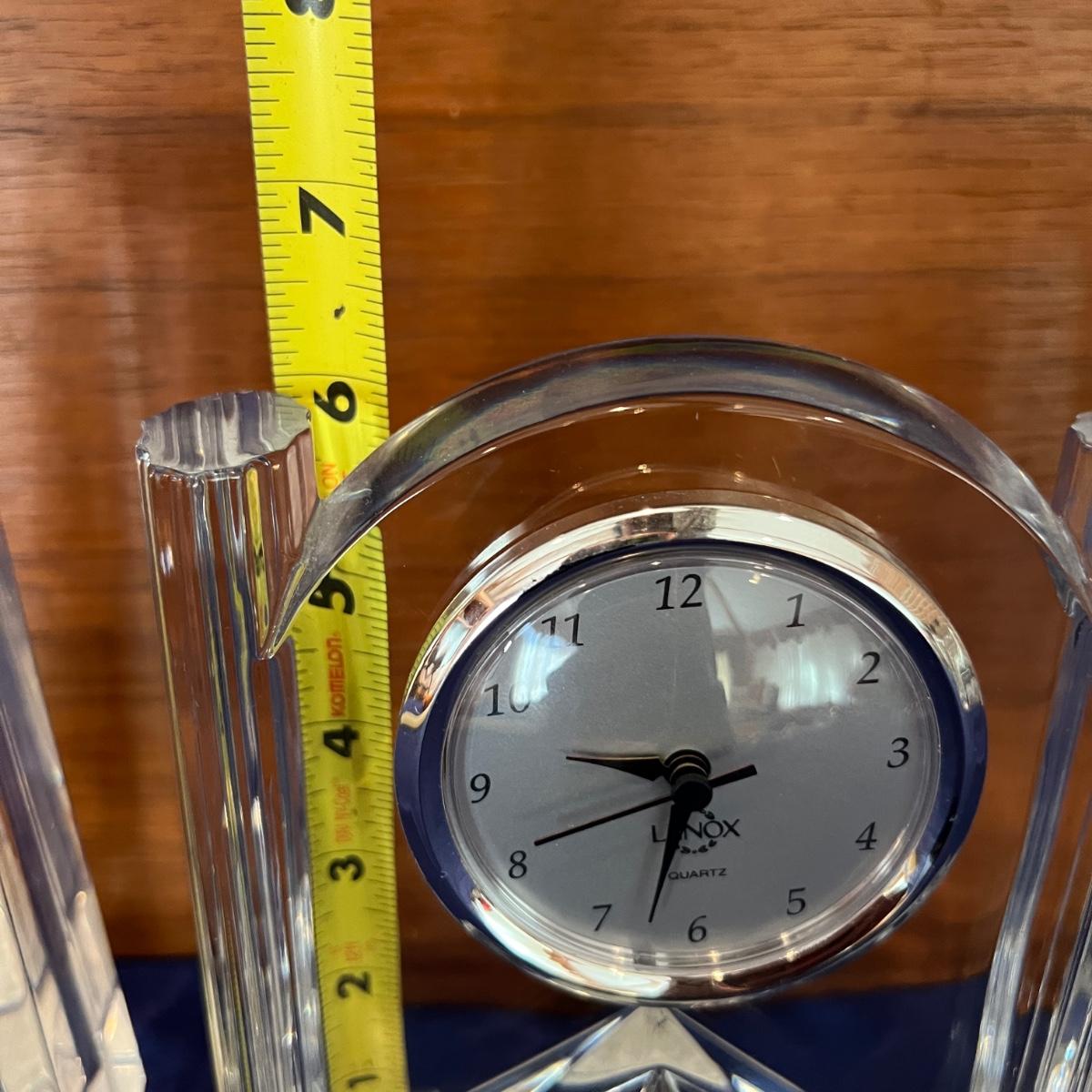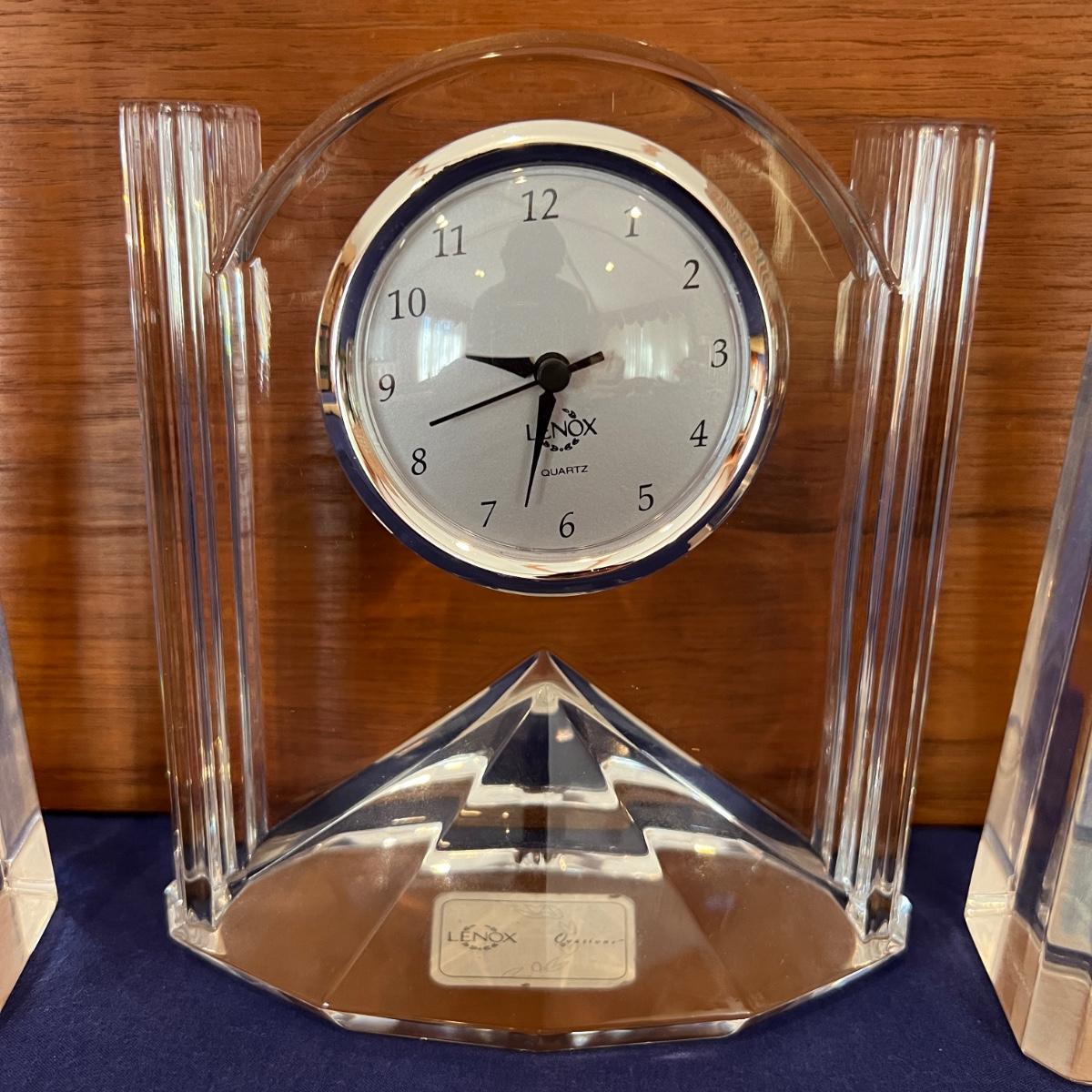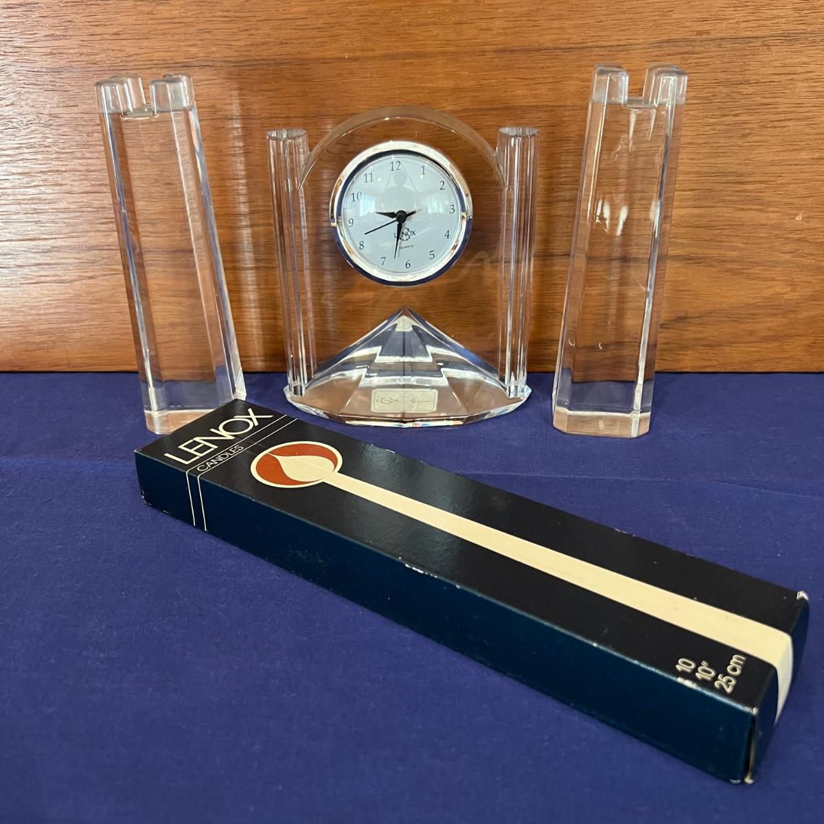 Lenox Crystal Lot - Pair Avalon Ovations Candleholders, Desk Clock, Box of Candles