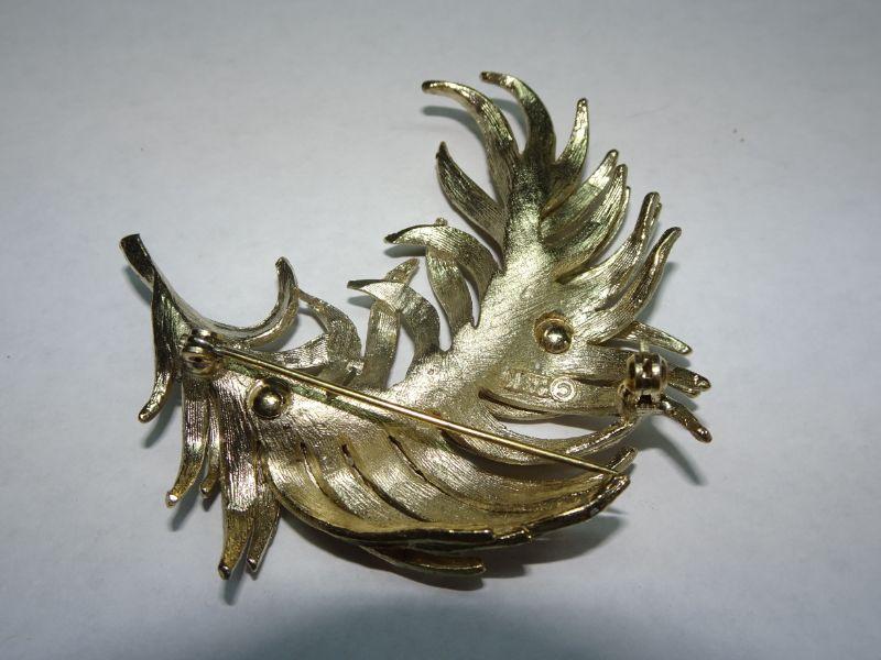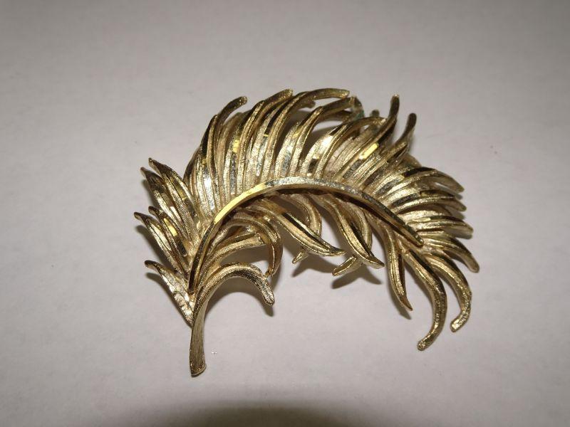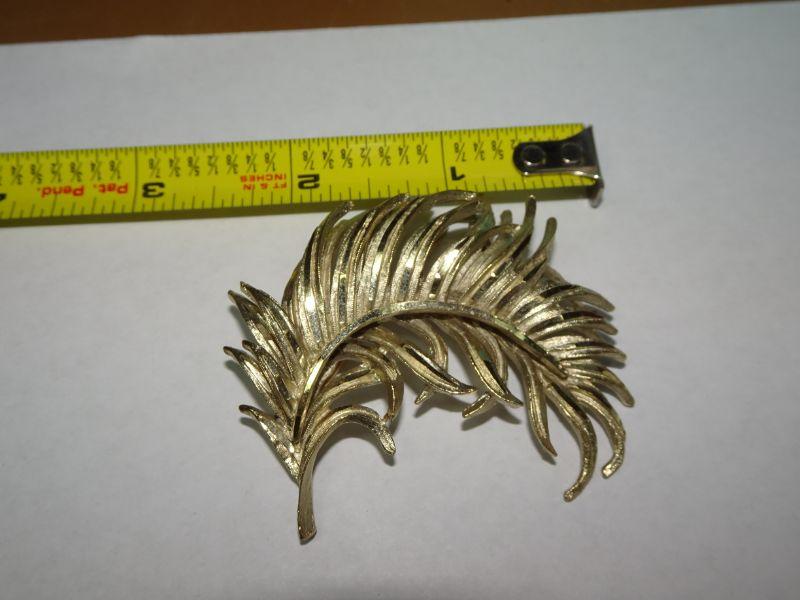 Wispy Gold Tones Leaf Pin Mid Century Jewelry