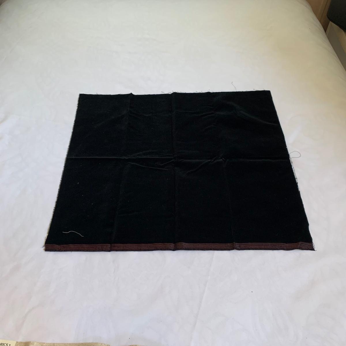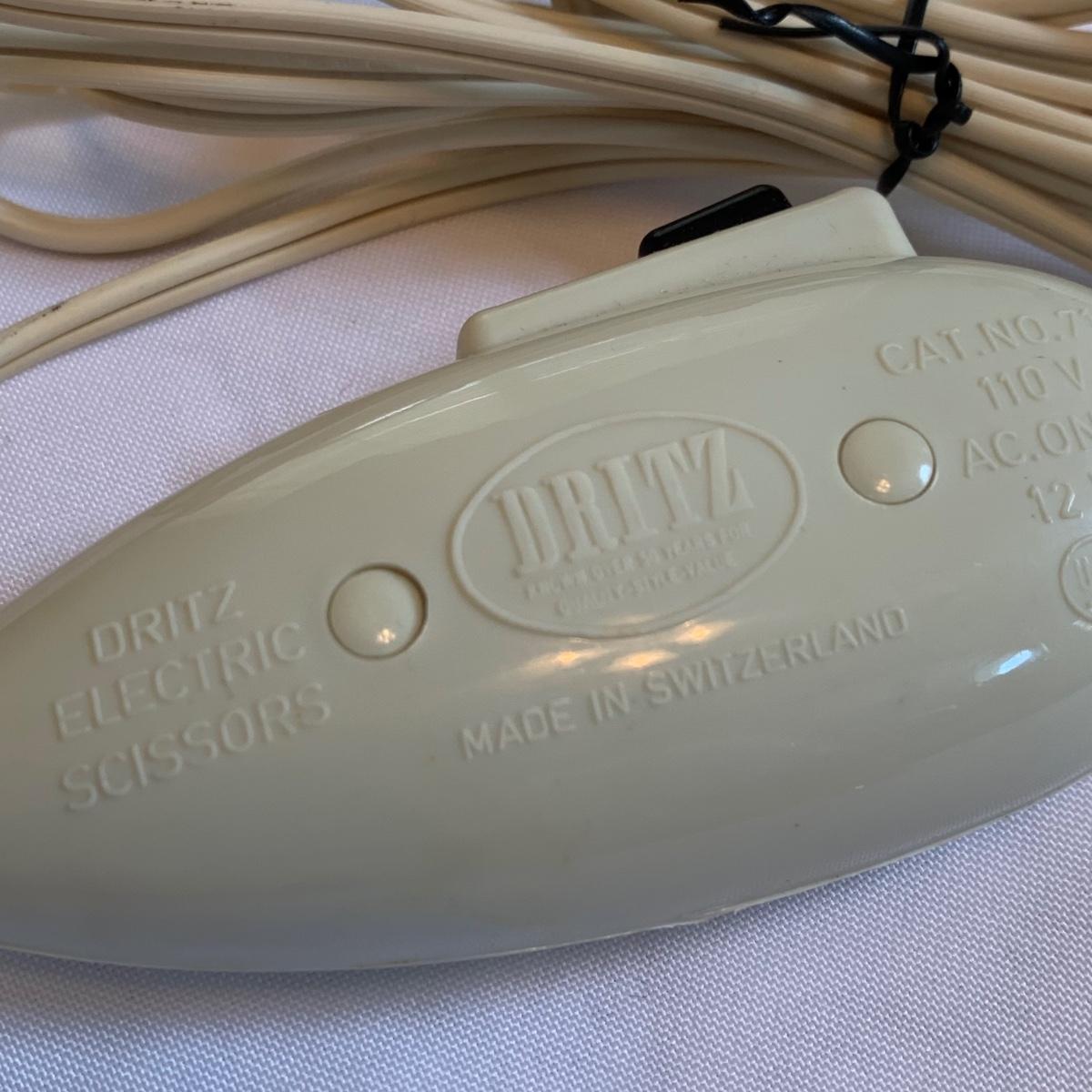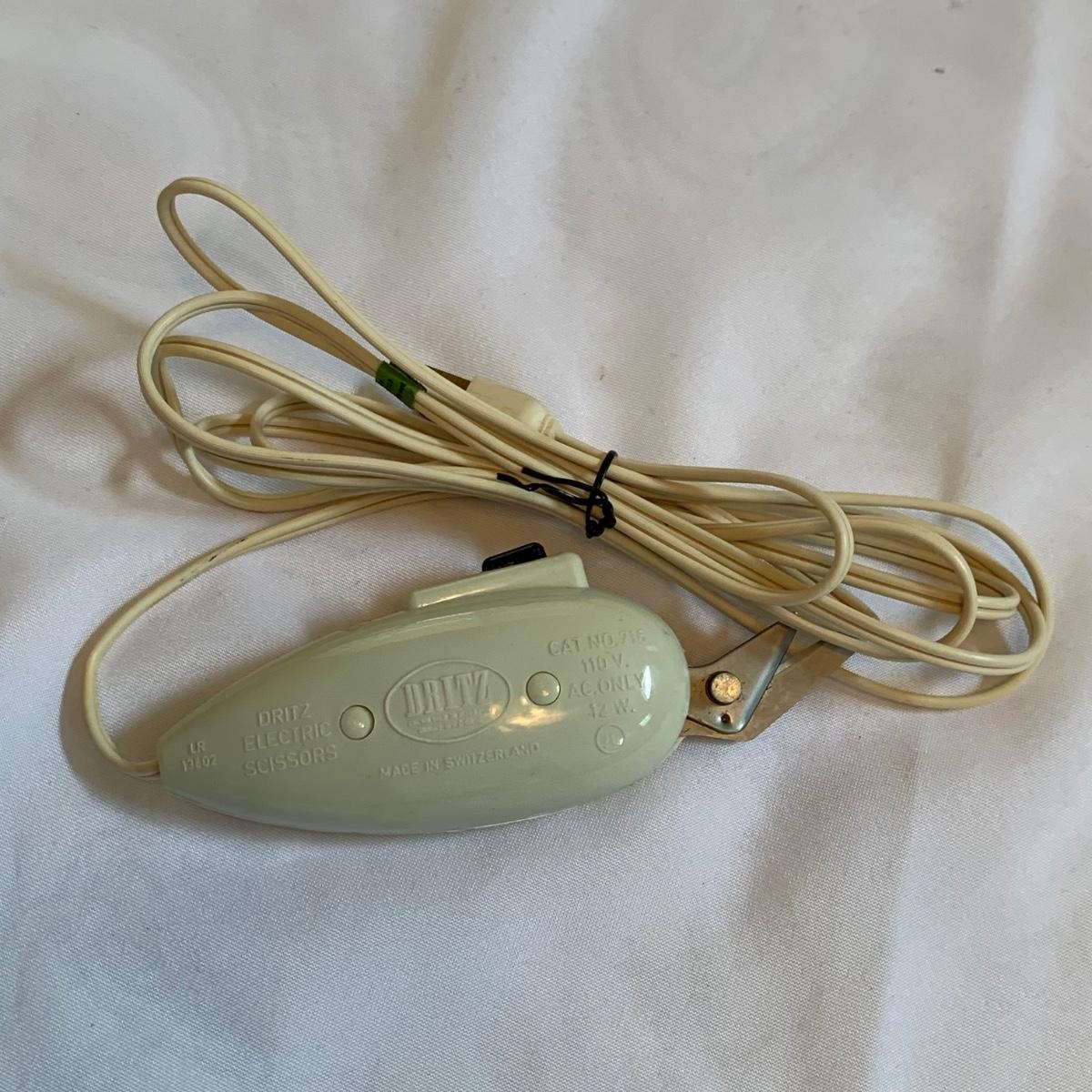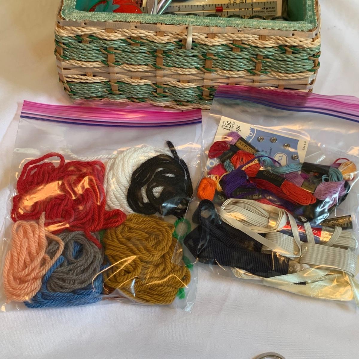 A variety of sewing and crafting supplies. Lot includes a pair of Wiss pinking shears, Dritz electric scissors, a variety of velvet fabric, a sewing kit, and a bag full of buttons. The Dritz scissors powered on when plugged in. The sewing kit includes a lot of thread, a measuring tape, a thimble, seam rippers, some yarn and embroidery thread, crochet hooks, a tomato pin cushion and pins, a sewing gauge, a needle threader, weights, and more. The fabric selection includes a few larger pieces of velvet fabric and some scraps. Four pieces of blue velvet all cut in the shape of a tank top. The largest piece of black velvet is 52” x 40” and there’s another one just slightly smaller.
