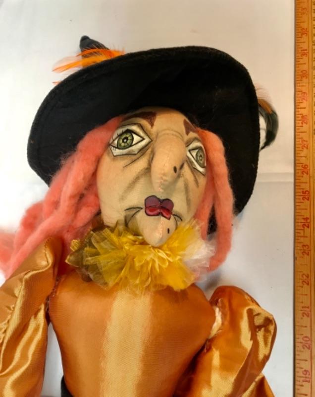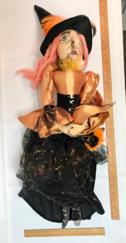 Semi-scary witch to sit on a shelf or a chair. In good condition. Measures 24" approx.