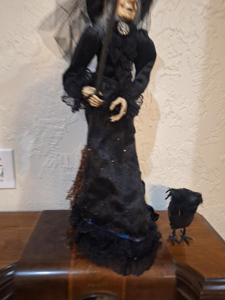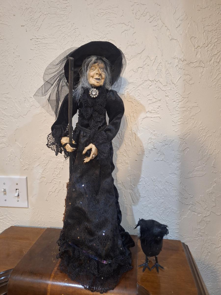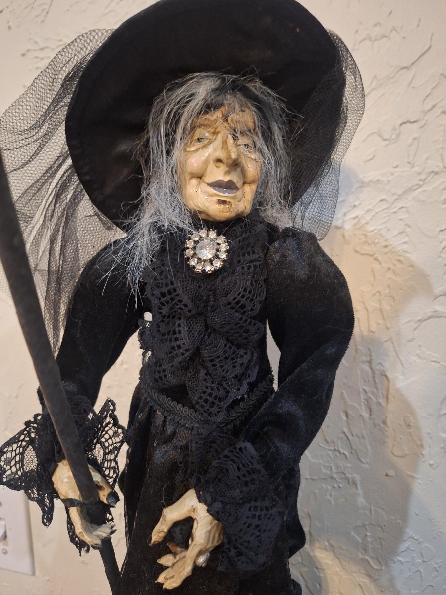 she seems to be made of paper mache or something simliar. She requires gentle handling and we will nto ship this item. Her arms will be easily brown if picked up by the arms and over handled.