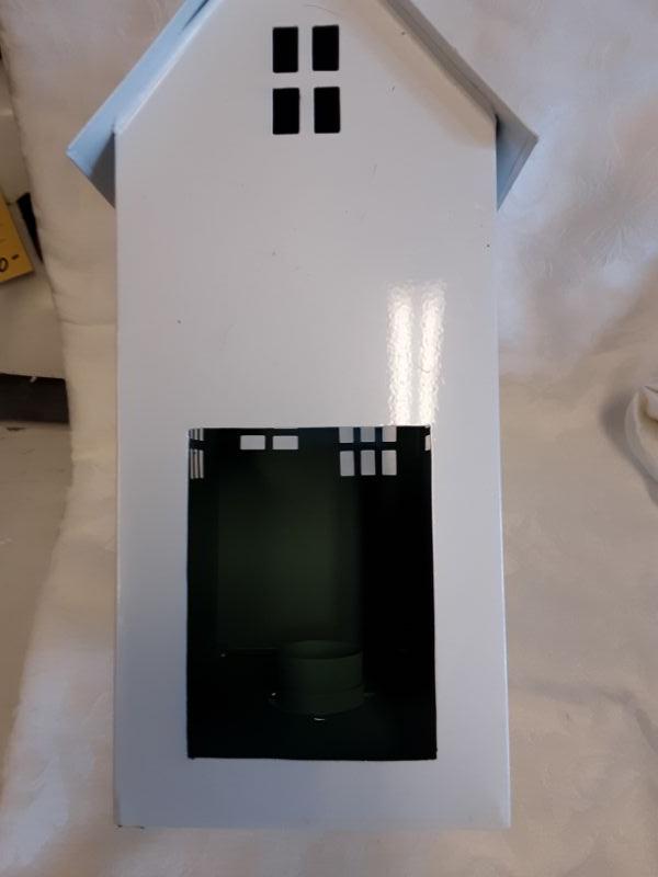 Wite Metal house tea light holder