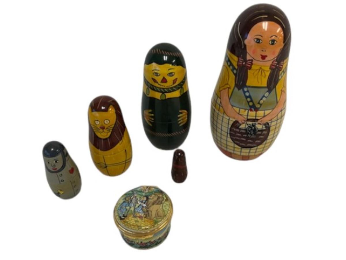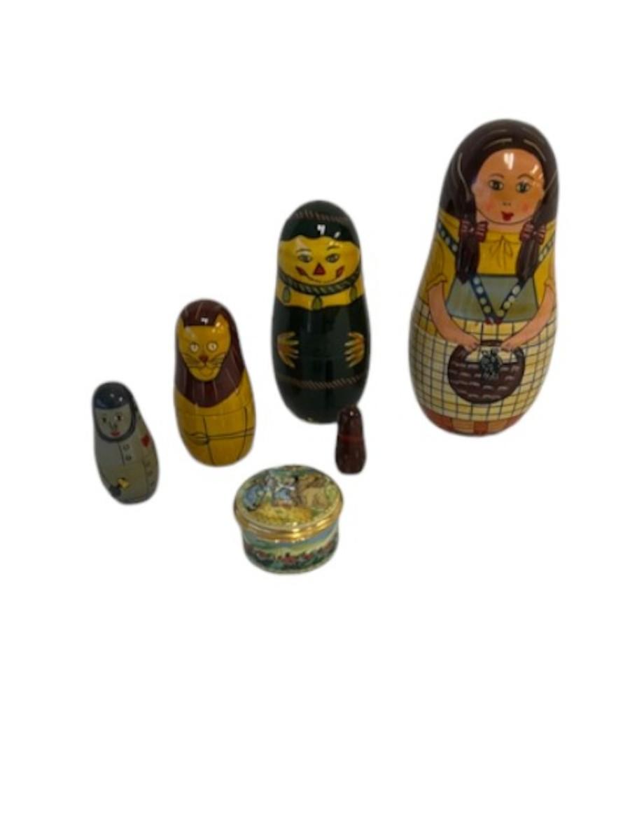 Pre-auction estimate: $50-100. Includes a Halcyon Days trinket box, and a set of nesting dolls. Total of 2 pieces. [BS]
