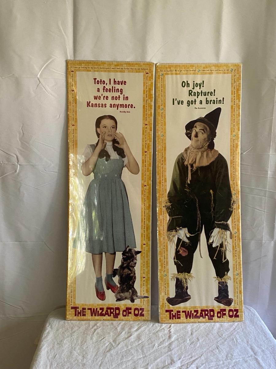 Presenting a pair of posters from the original Wzard of Oz movie. Here are Dorothy, and Toto along with poster of Scarecrow. length 11 3/4, Height 36"