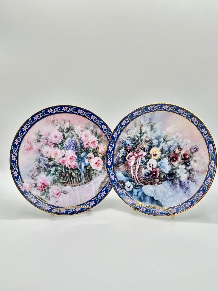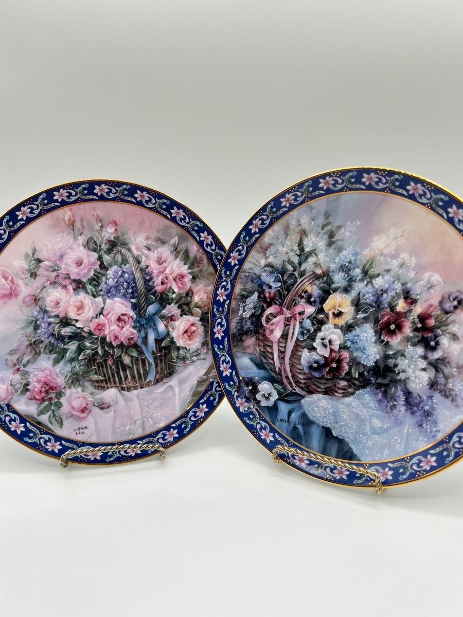 WJ GEORGE ~ Lena Liu ~ Pair (2) Basket Bouquets Collection Plates