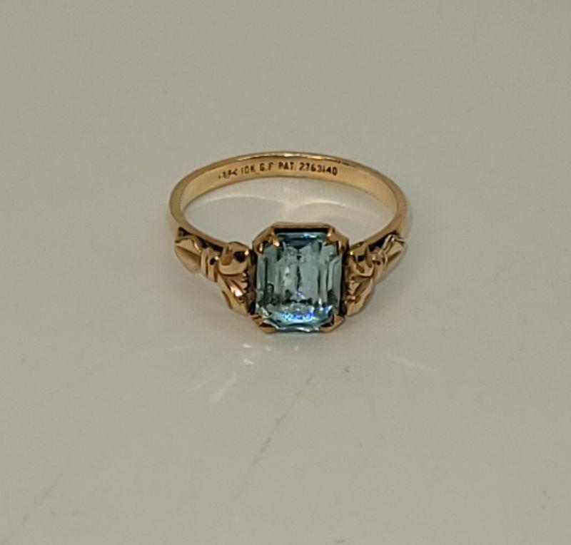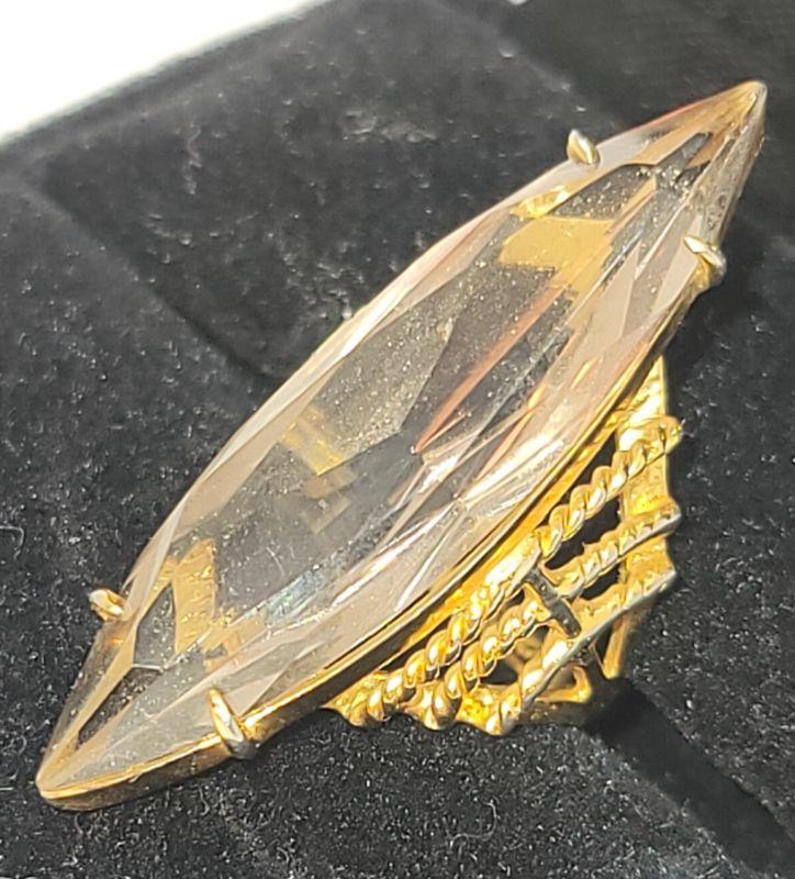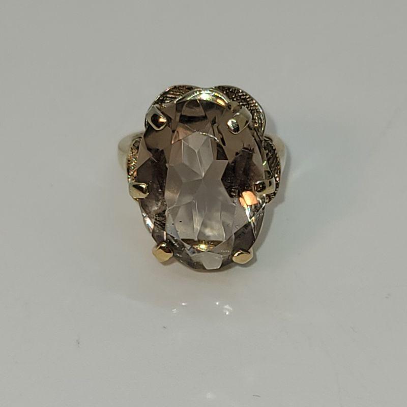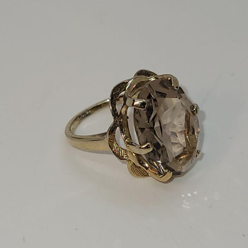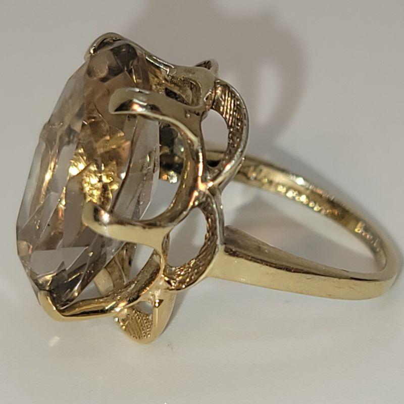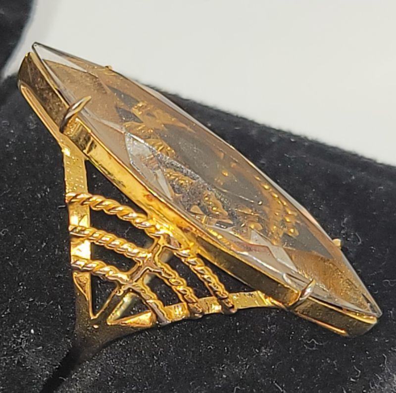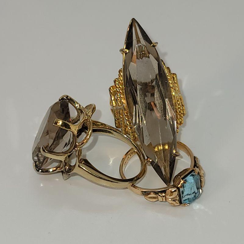 Wj34: Three Vintage Cocktail Rings, 10k goldfill patent # 2763140 blue topaz, oval and marquise smoky topaz