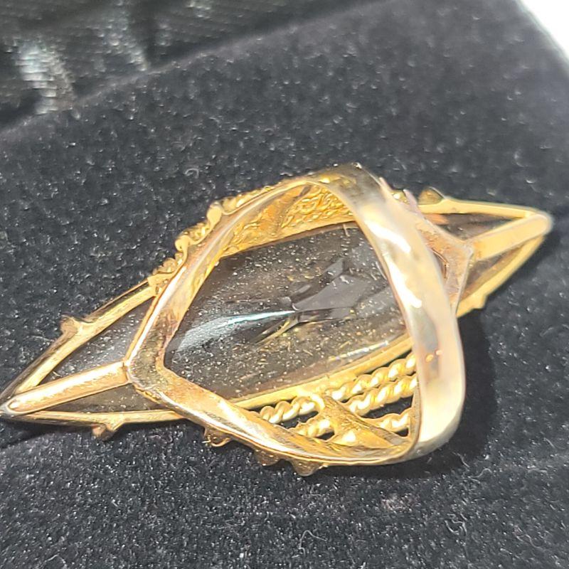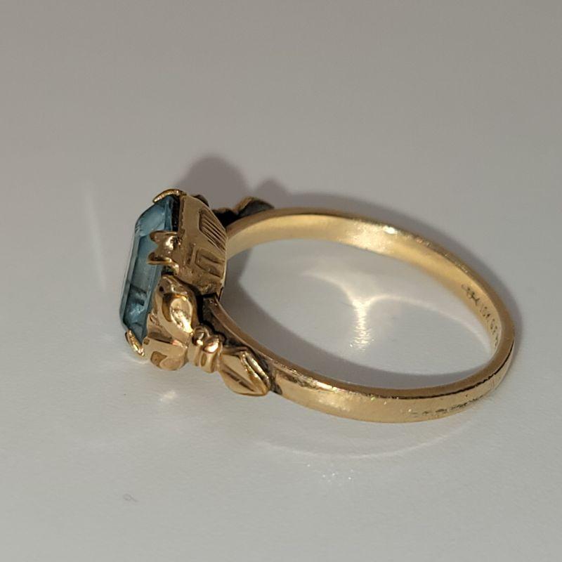 Blue topaz size 4 has a deep scratch but is still beautiful and functional. The other two are like new glass smoky topaz, oval is size 4 1/2 gold over sterling and marquis cut is size 4. It too may be vermeil but the engraving is too poorly stamped to make out. Great petite or pinkie rings!