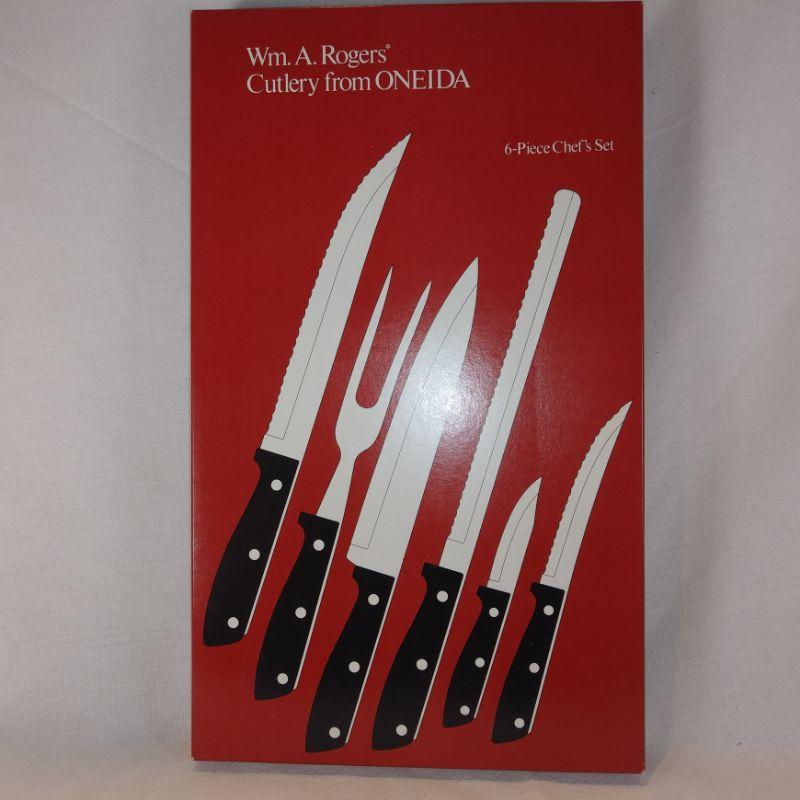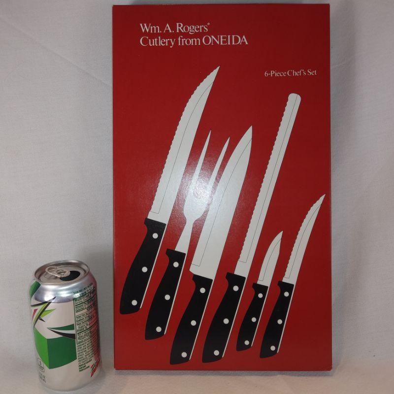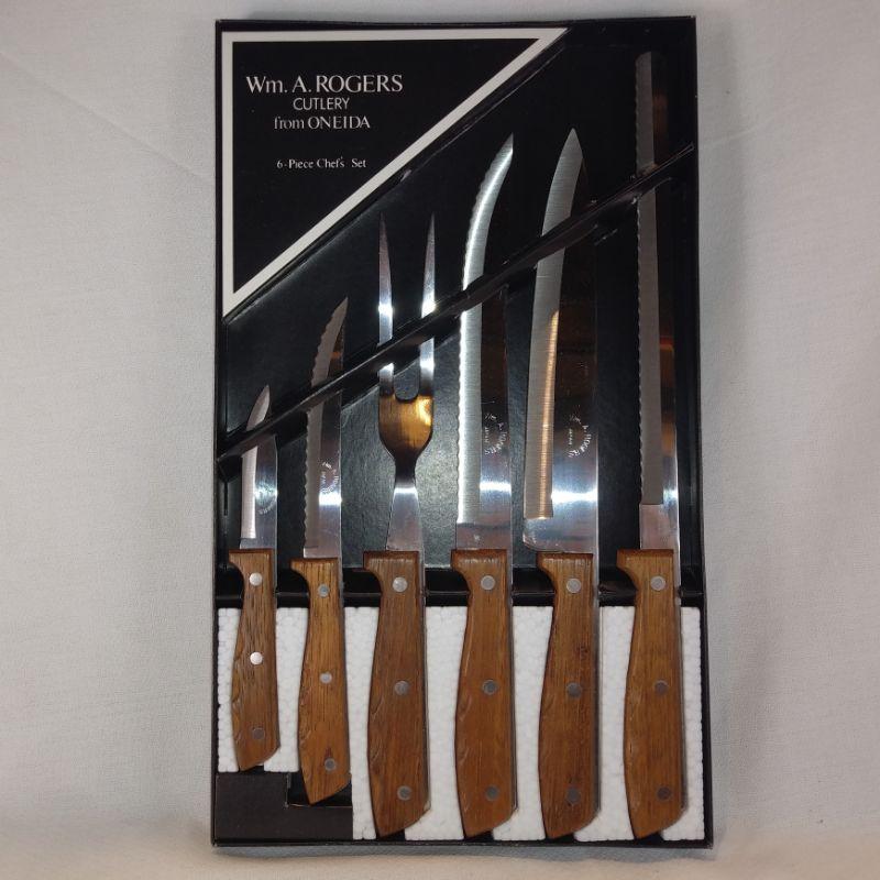 This is a new William A. Roger's Cutlery Set by Oneida. The set contains 6 wooden-handled utensils. All new and in very good condition, even the box. This would go great with that beautiful Dansk Cooking Pot or Salad Bowl found elsewhere in this sale.
