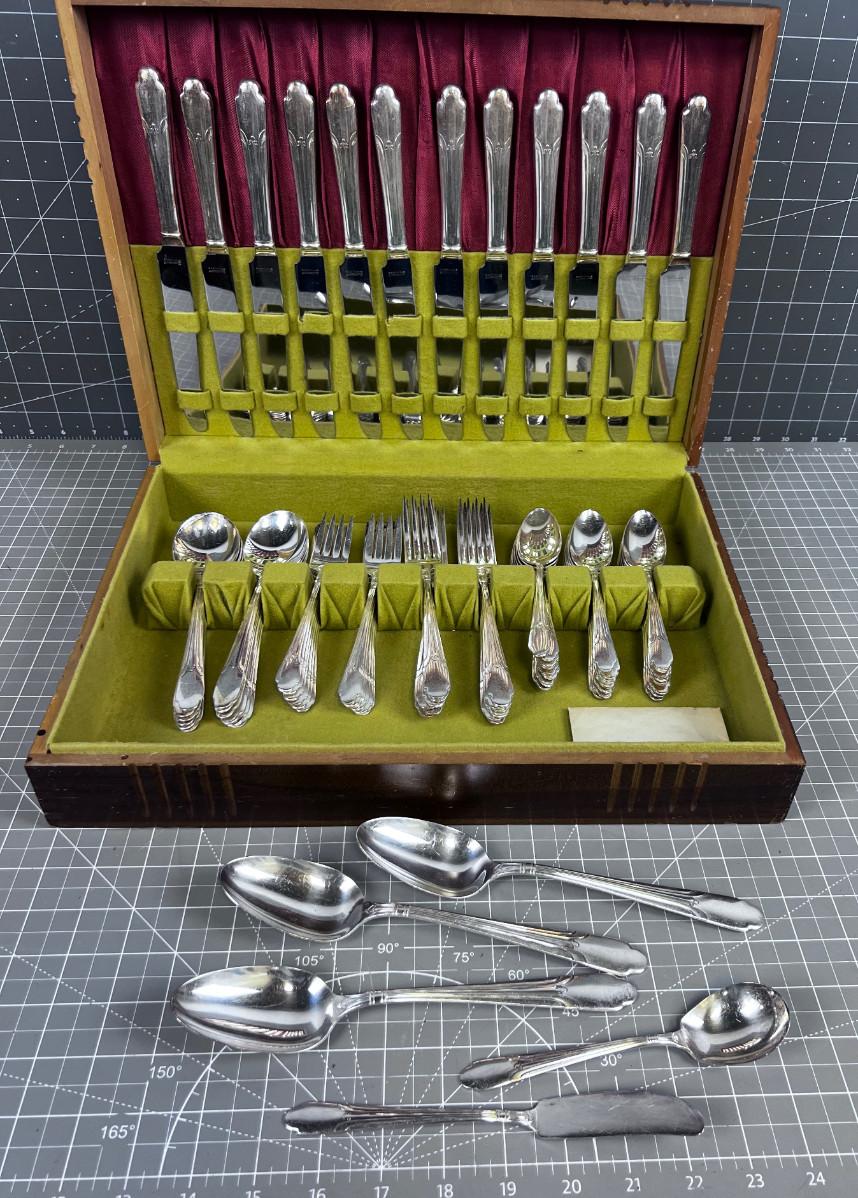 WM Rogers Silver Plated Set of Service for 12 with some serving.