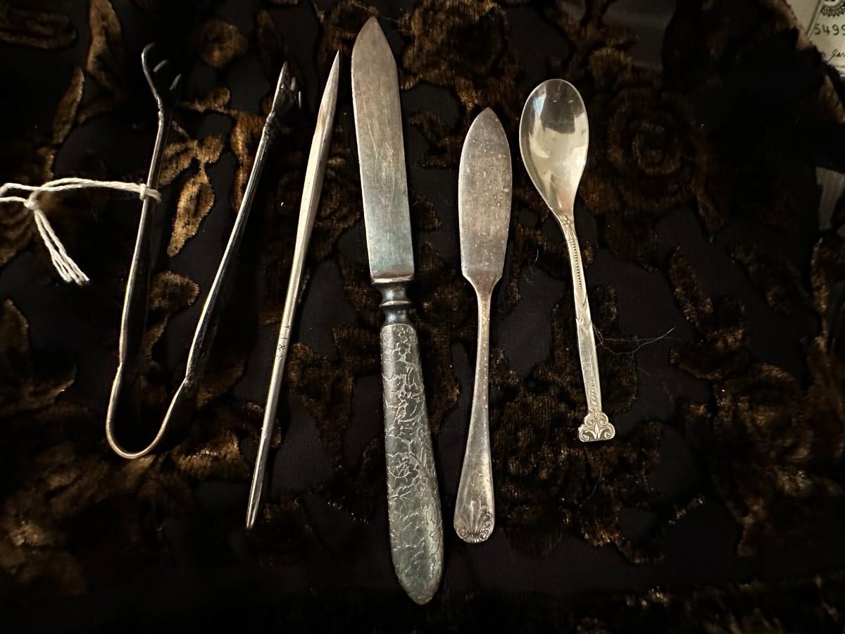 Wm. Rogers Silverplate Fruit/Cheese Knife Raised Leaf Pattern 5 3/4" along with lot of silverware
