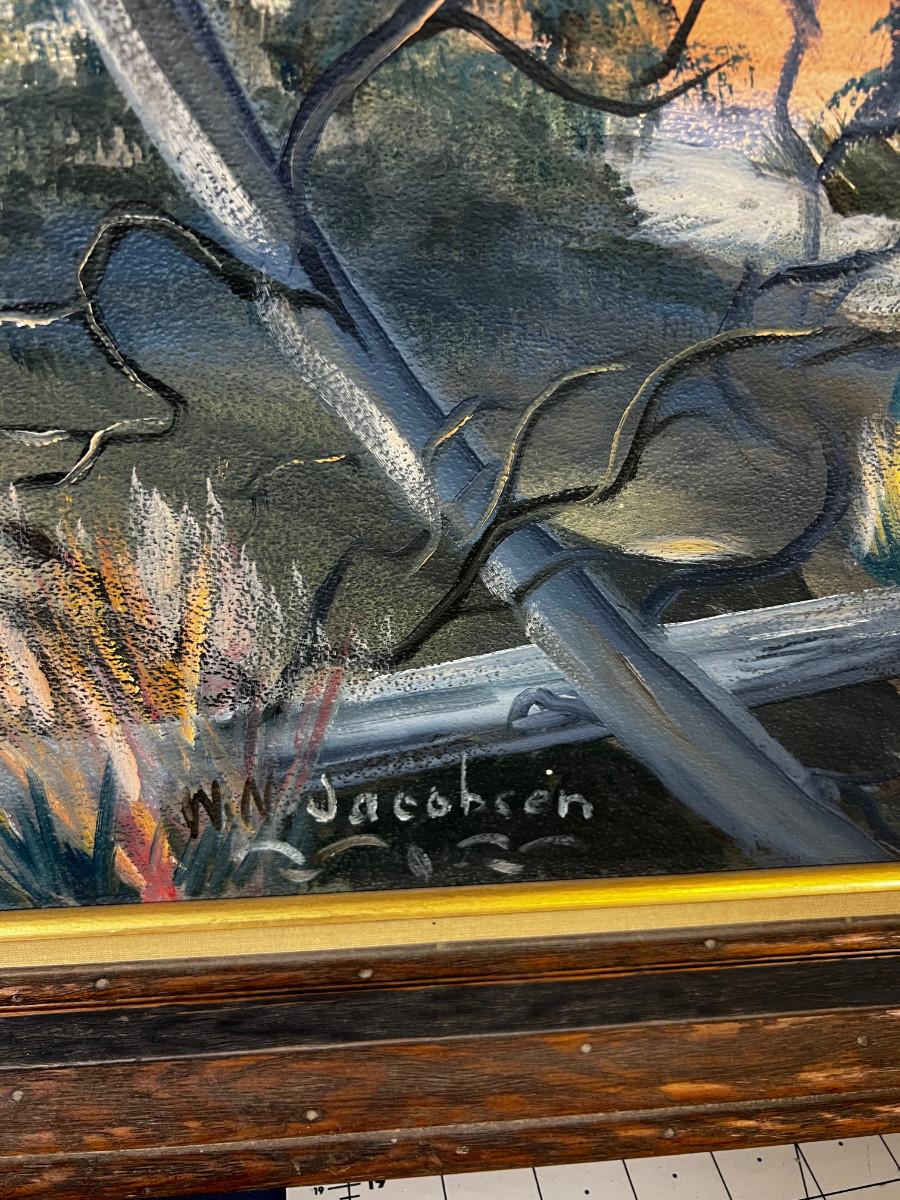 WN Jacobsen Utah Artist of River & Mountains Oil on Board