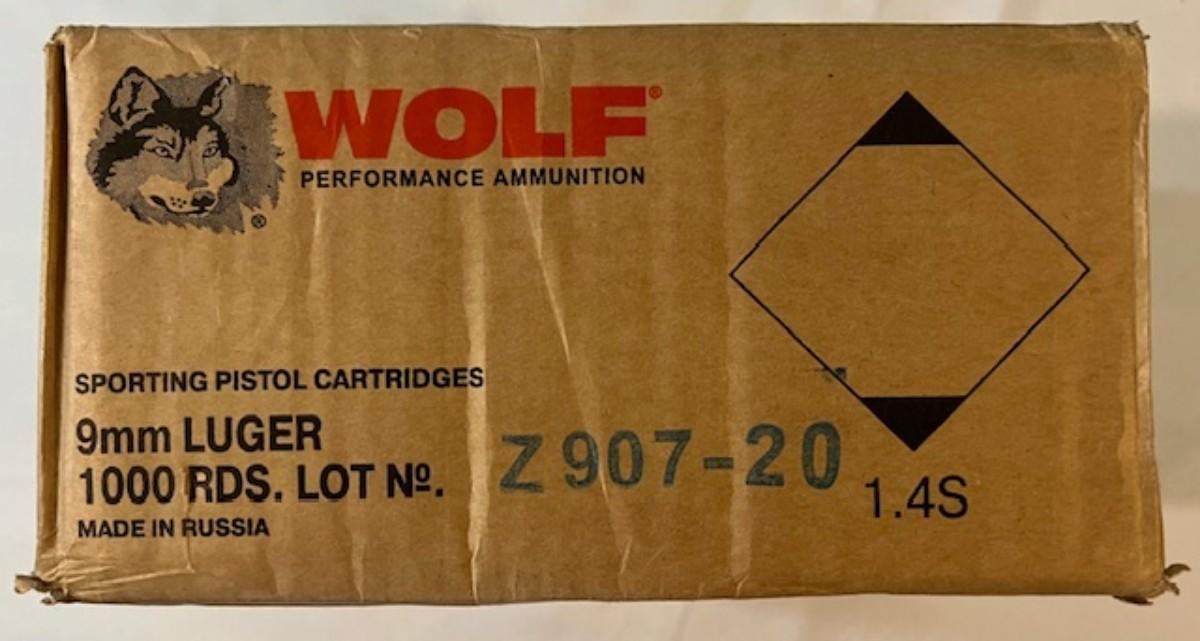 Wolf 9mm Luger Sporting Pistol Cartridges (NO SHIPPING)