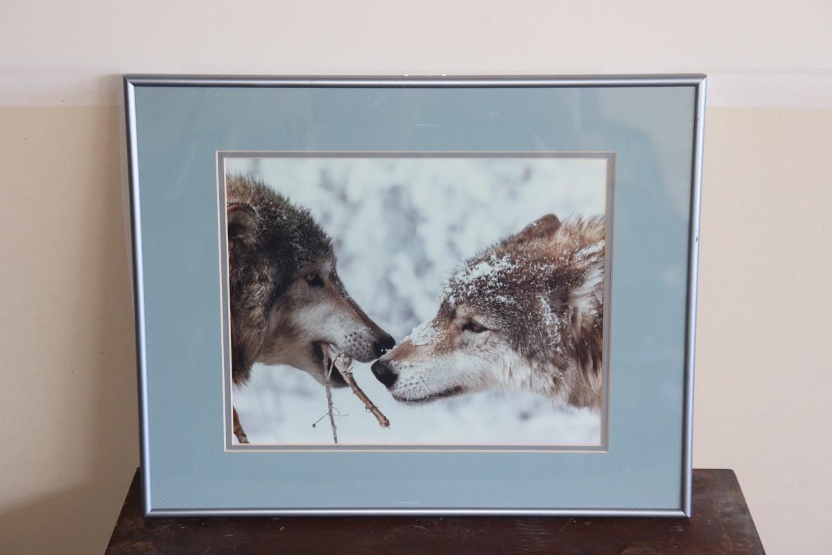 Wolf picture in a teal photo frame