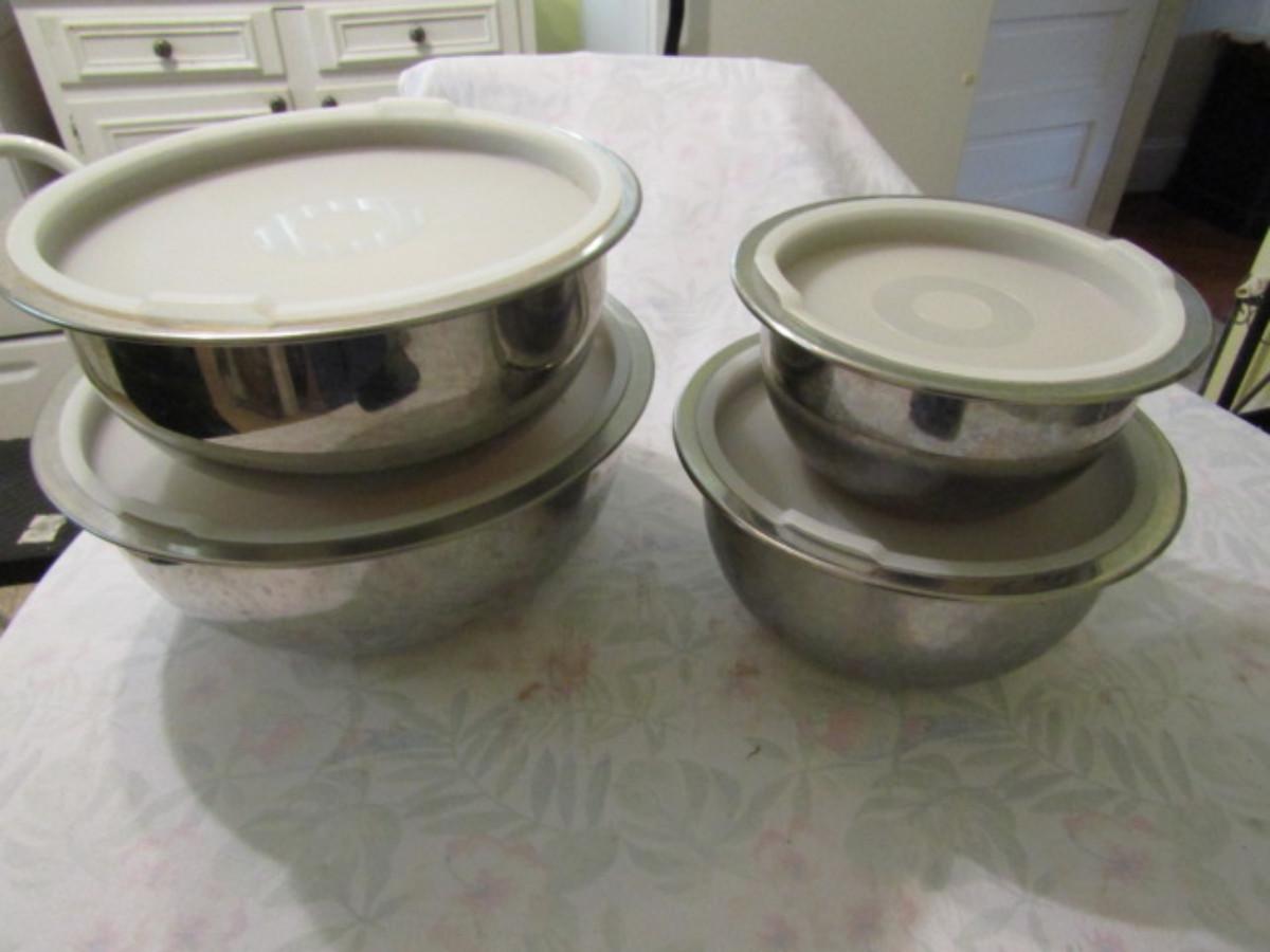 Wolfgang Puck Nesting Stainless Steel Bowls with Lids- Nice Heavy Weight