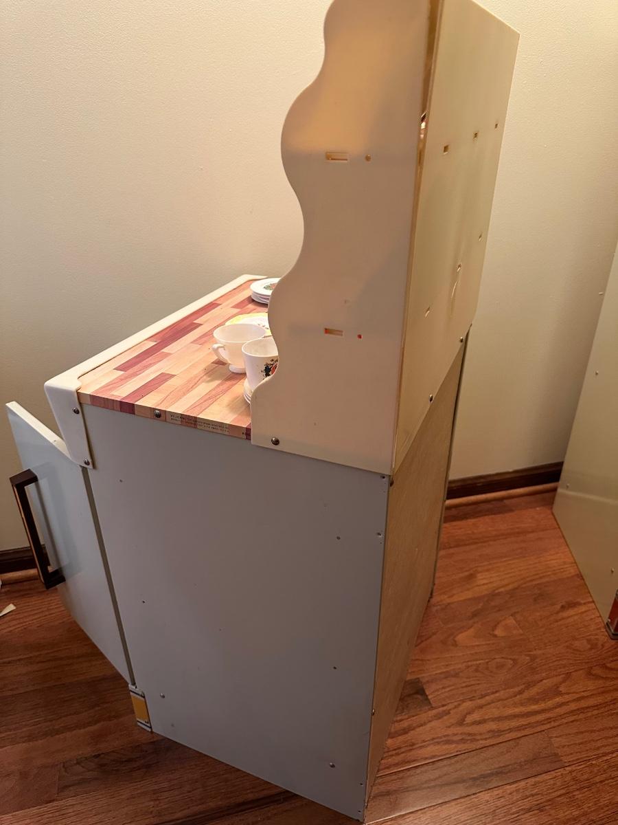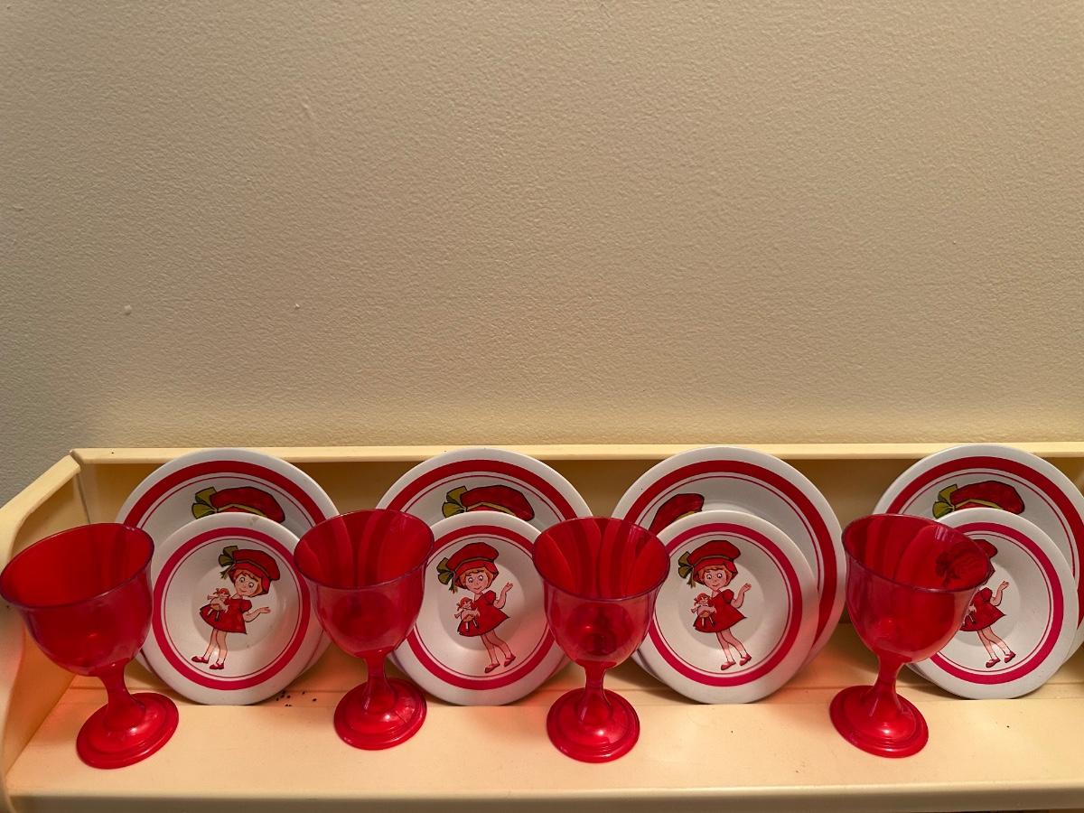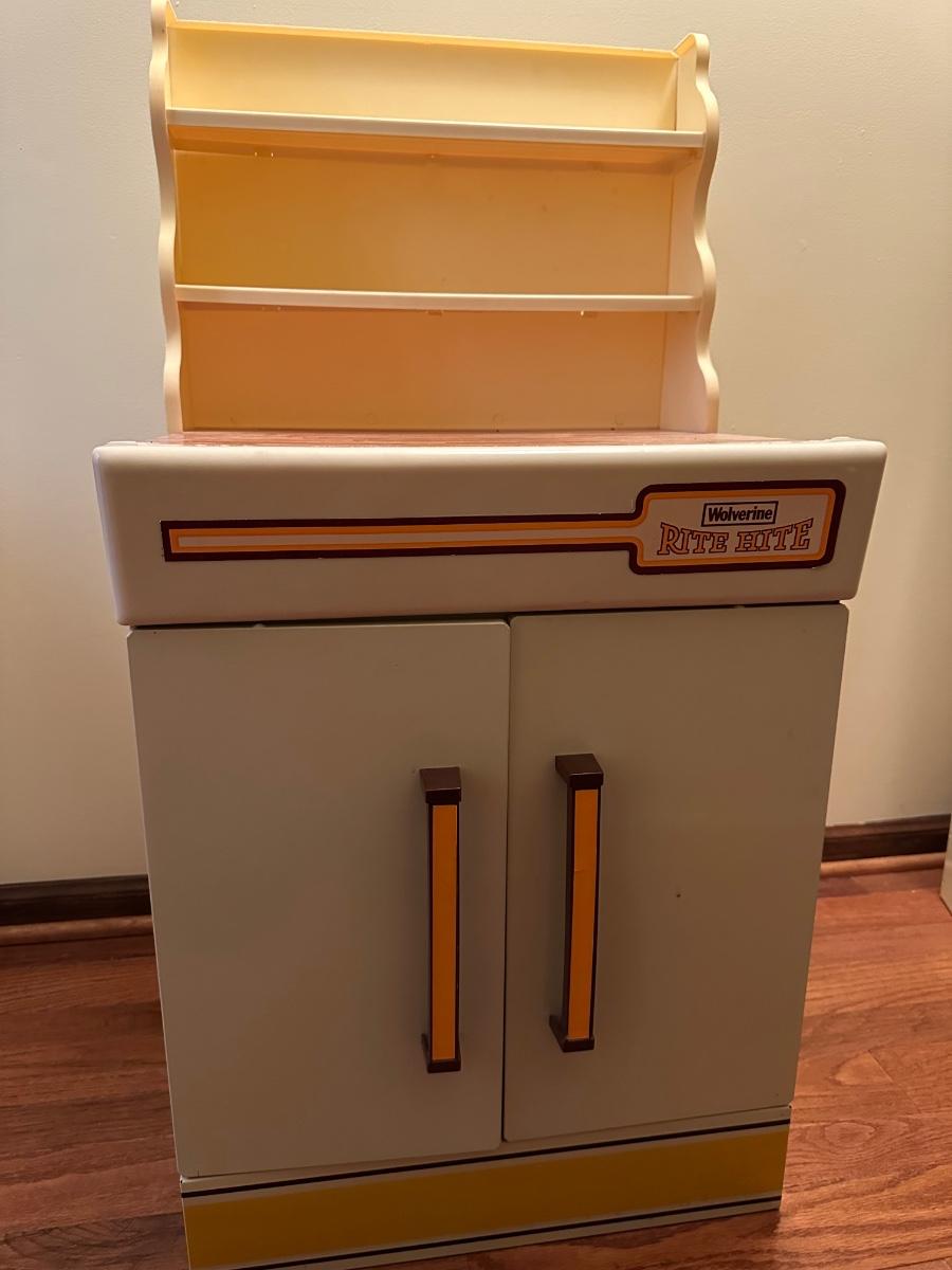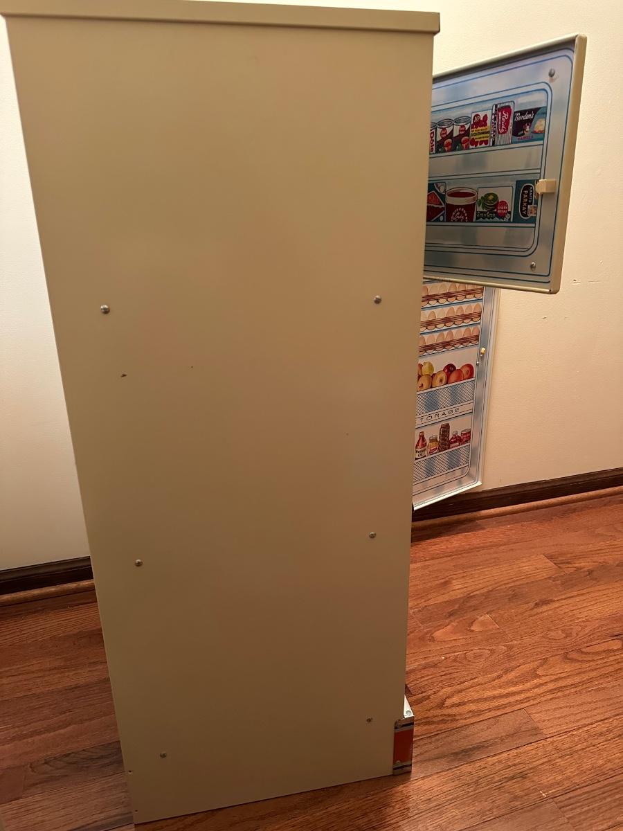 Wolverine metal refrigerator & hutch set and tea set accessories.
