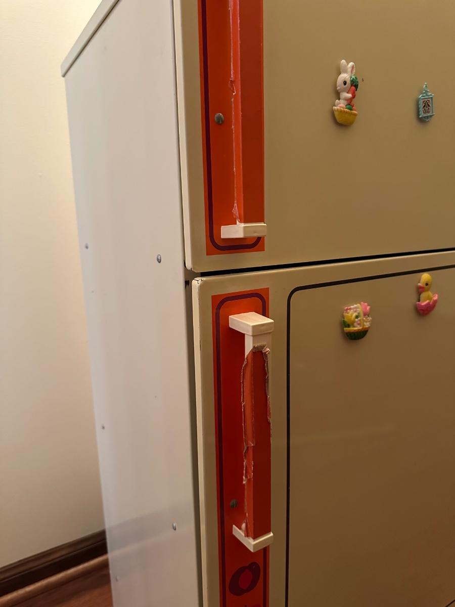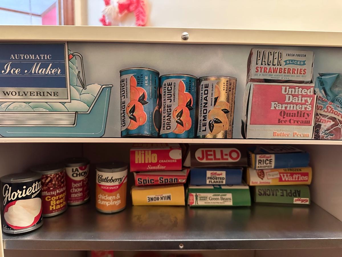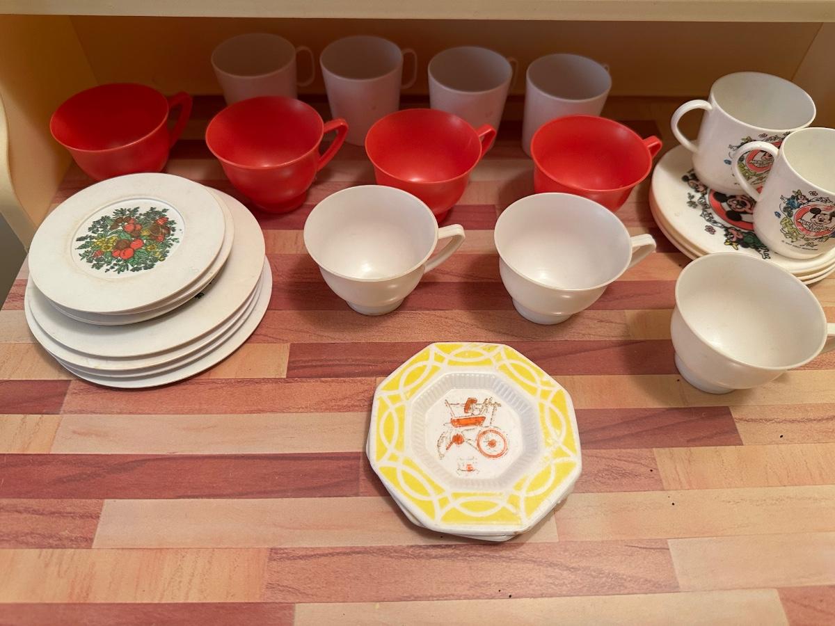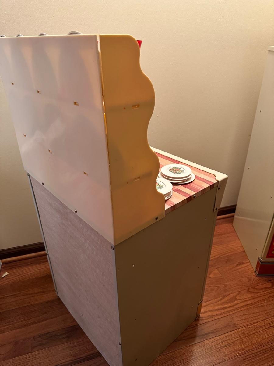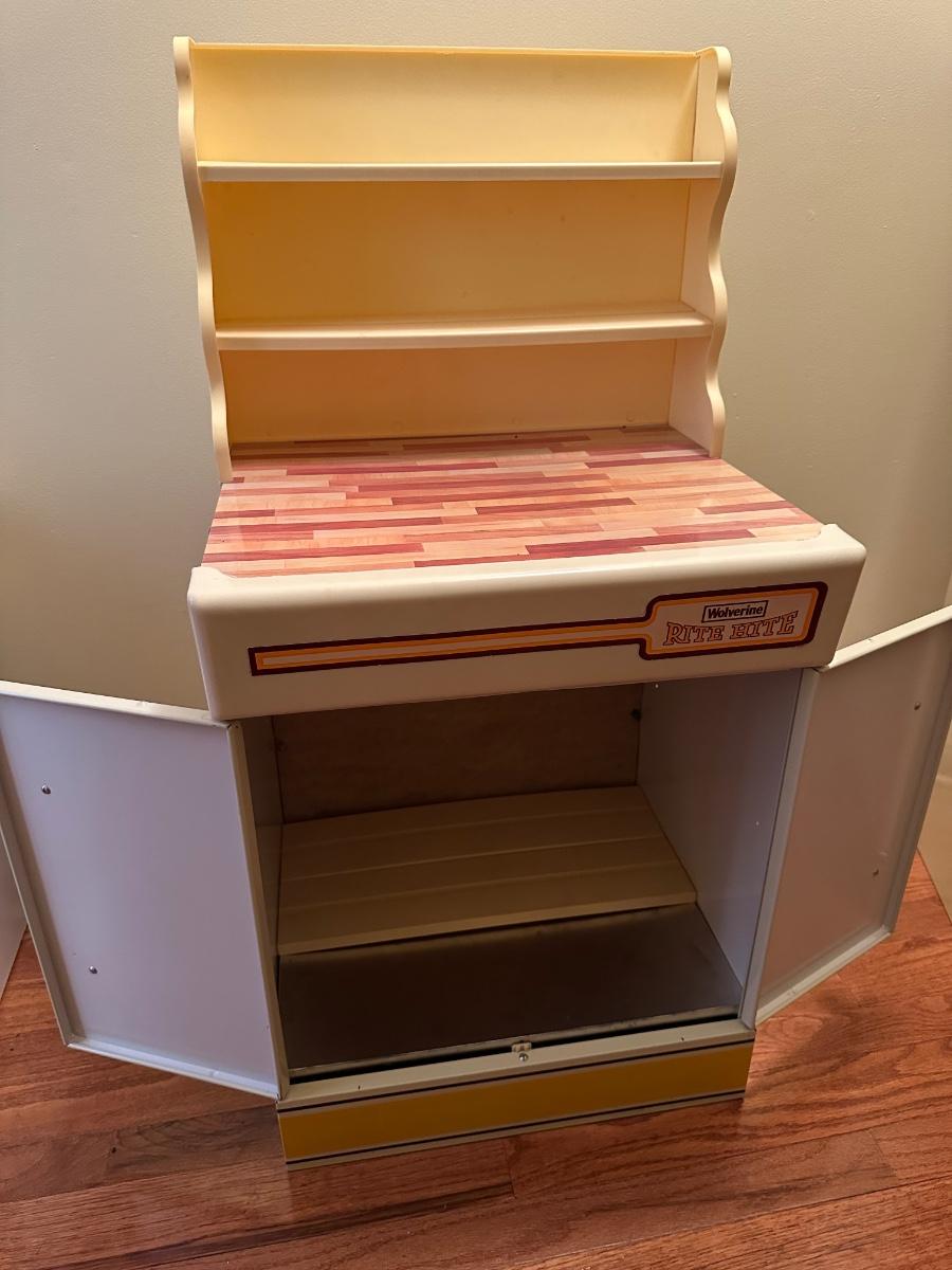 Wolverine metal refrigerator & hutch set and tea set accessories.