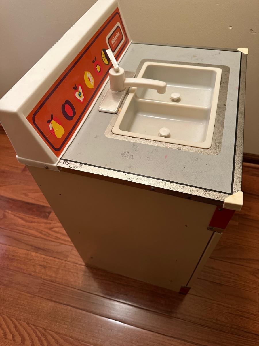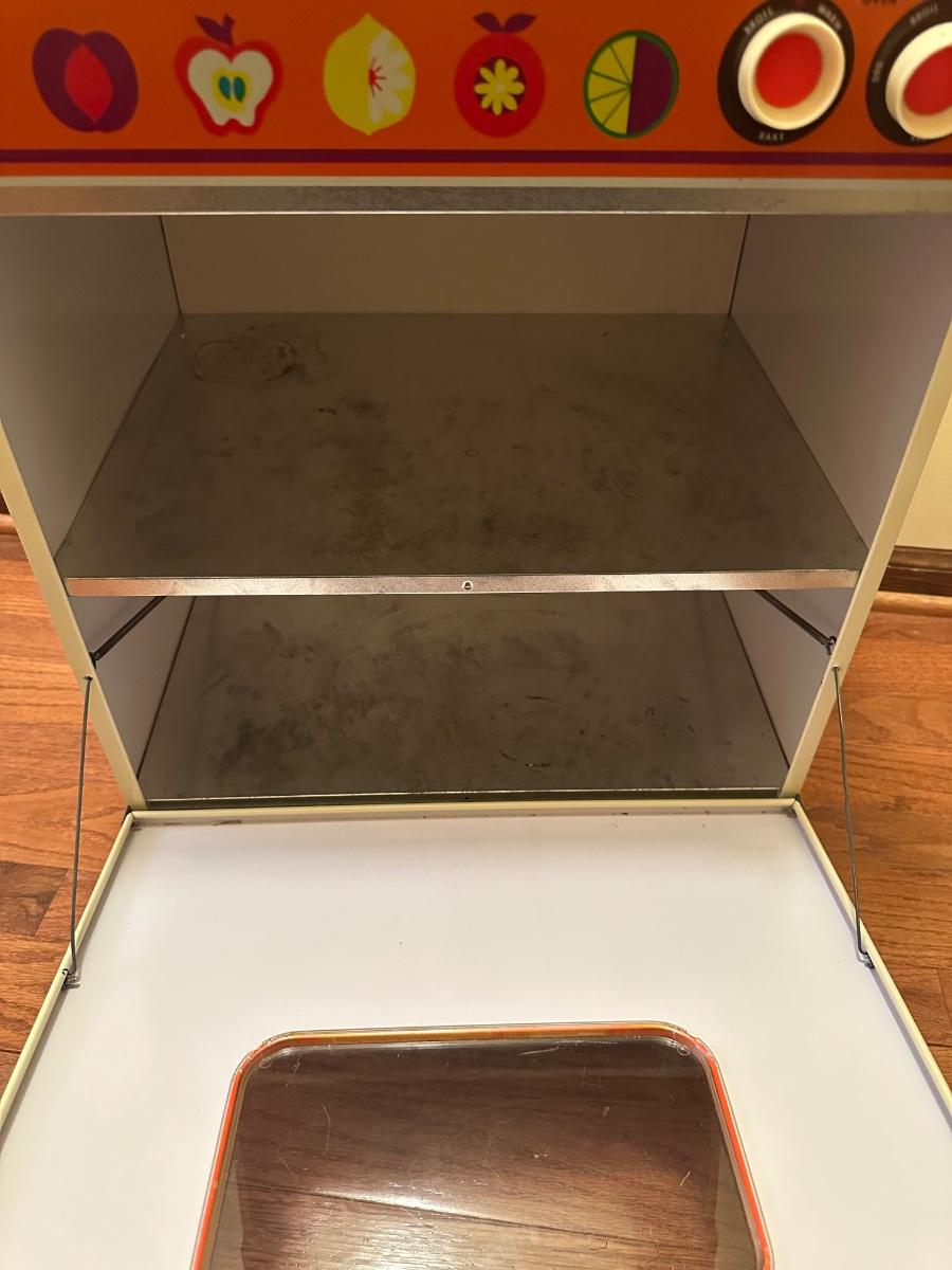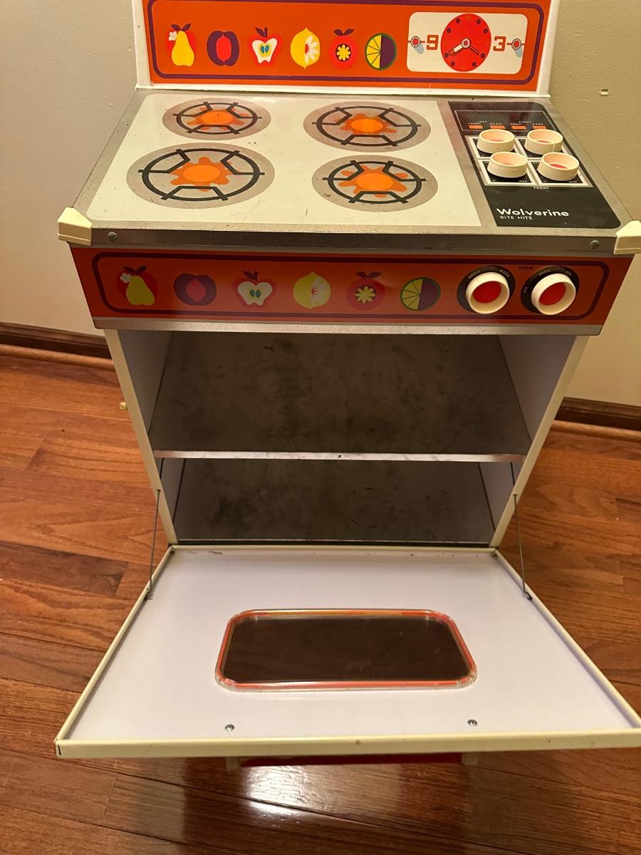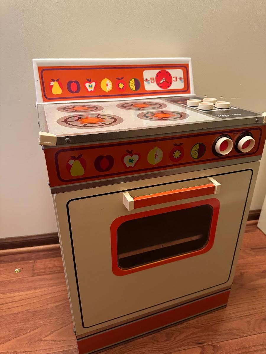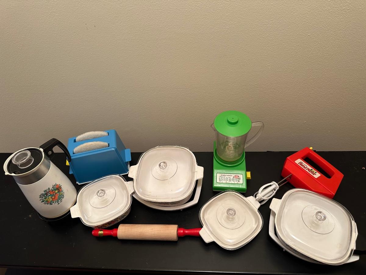 Also included dishes, play mixer, toaster blender and rolling pin.