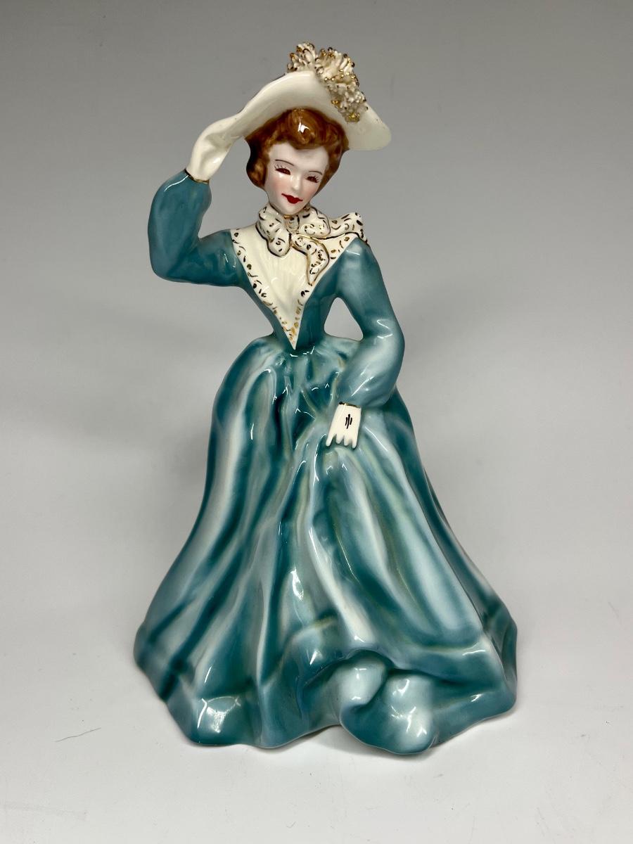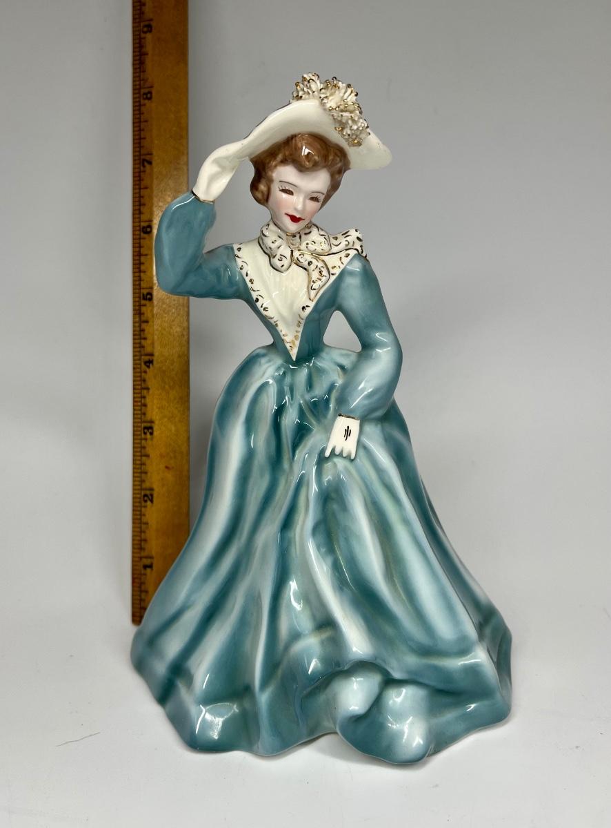 Vintage Florence Ceramics "Lisa" Woman in Blue Dress Figurine. In good vintage condition.