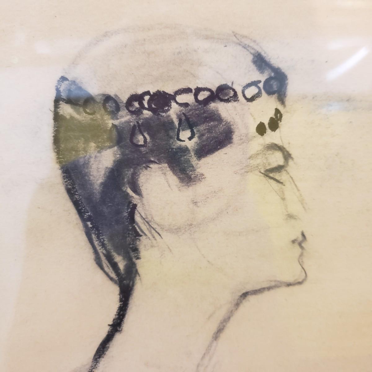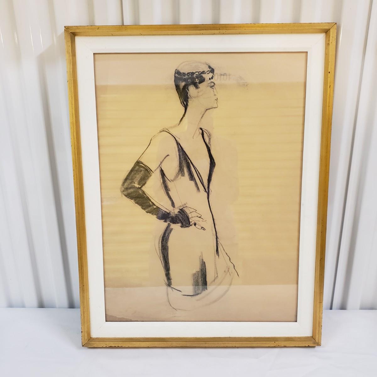 This wooden framed and matted picture of a woman sketched in charcoal measures 21"x2"x27". The picture itself appears to be old and has what appears to be a wayer stain on ots bottom corner. There is some wear on the frame as seen in the pictures.