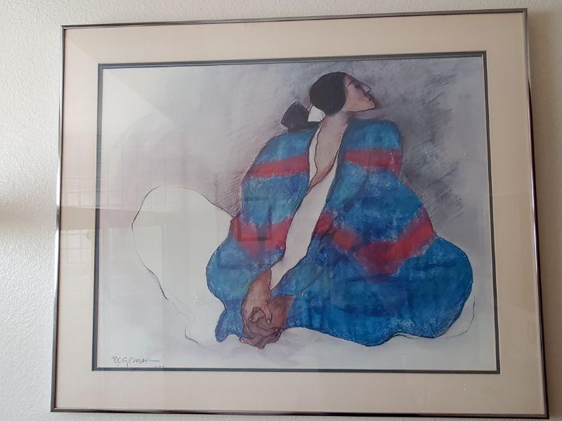 Lithograph of "Woman in Striped Blanket" By RC Gorman