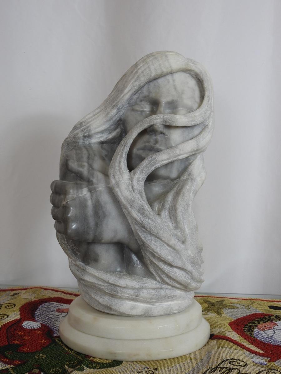 Beautiful stone sculpture signed Wilson . Appears to be multi media, granite, marble alabaster . Very unique. Approx 10"tall.