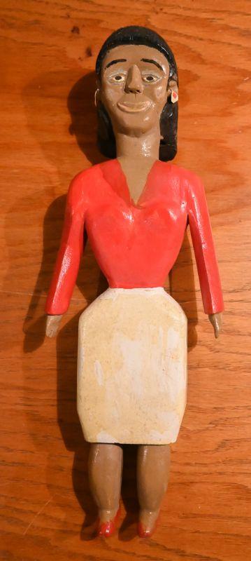 An untitled sculpture by artist George Williams (American, 1910-1997). Wood, mixed media. Approx. 6.5" x 3" x 18".