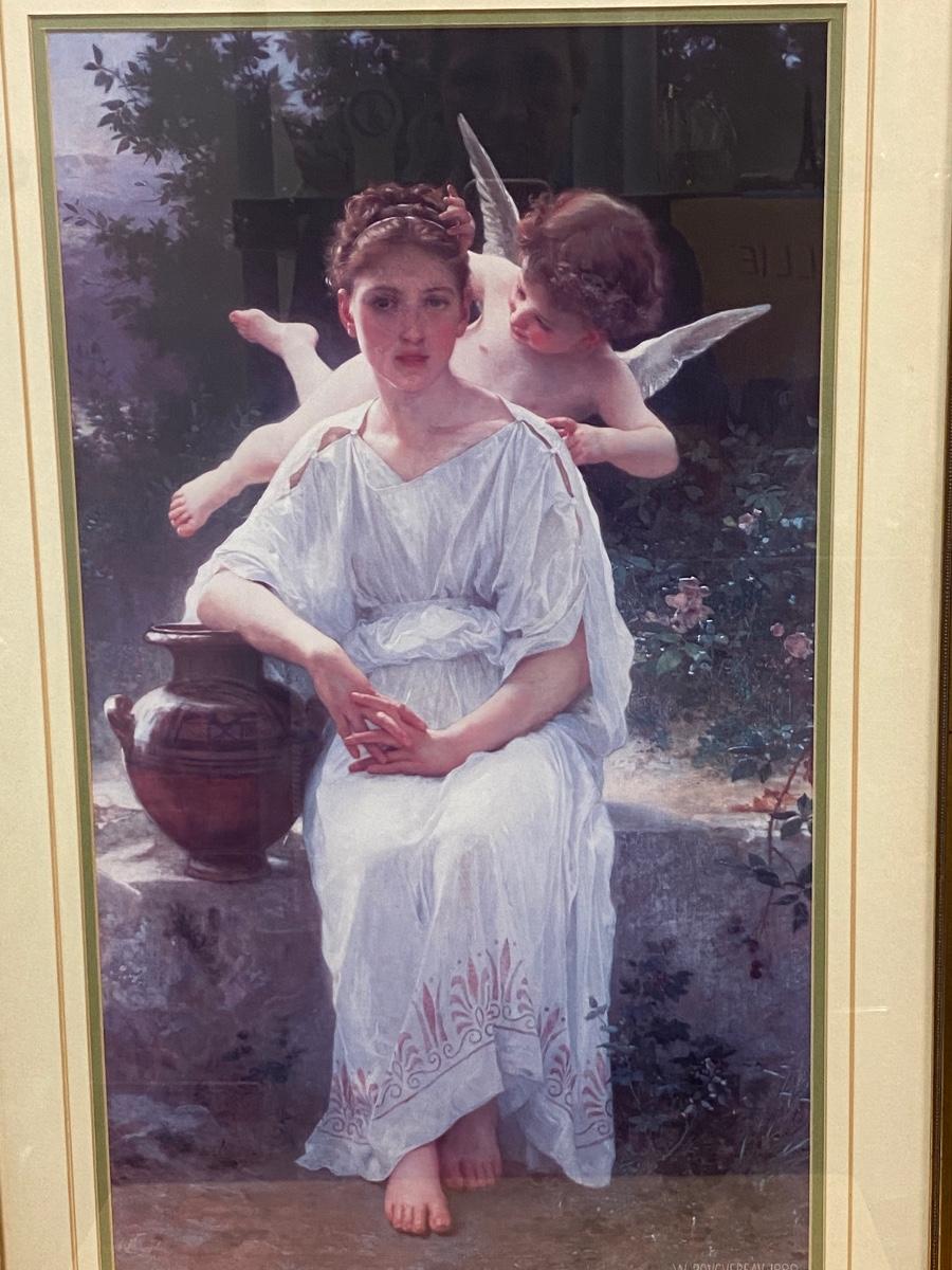 Woman Sitting with Cherub William Bouguereau Art Print. Nicely framed print.