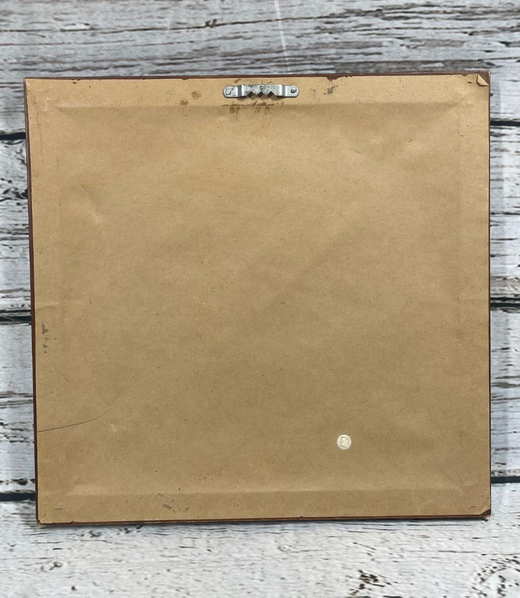 This item is in great condition and there’s no noticeable damages. It comes with a metal item attached to the back to help it hang. It is measured as a 10x10 picture frame.