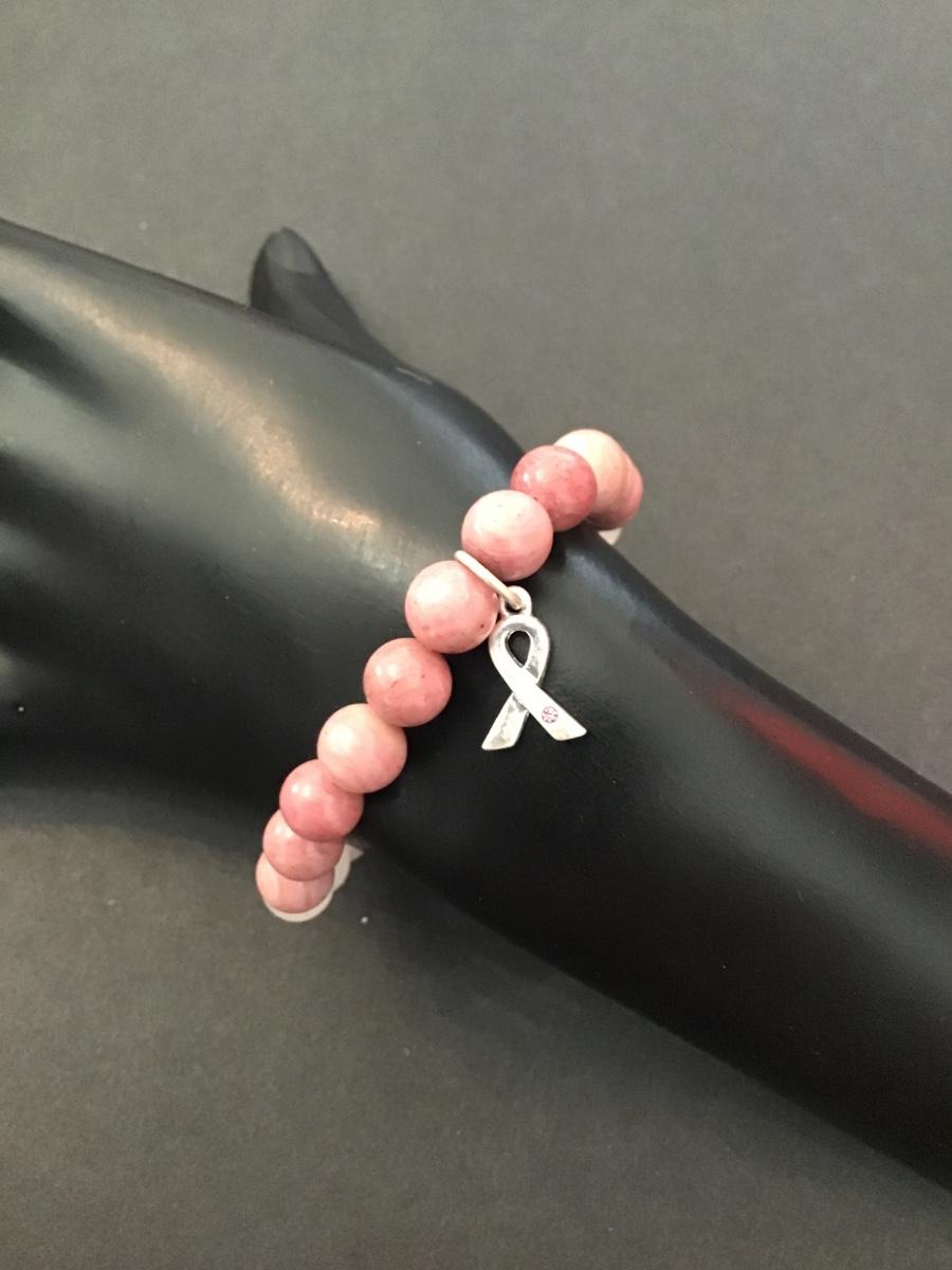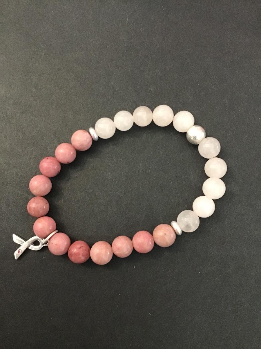 Woman’s breast cancer stone beaded stretch bracelet