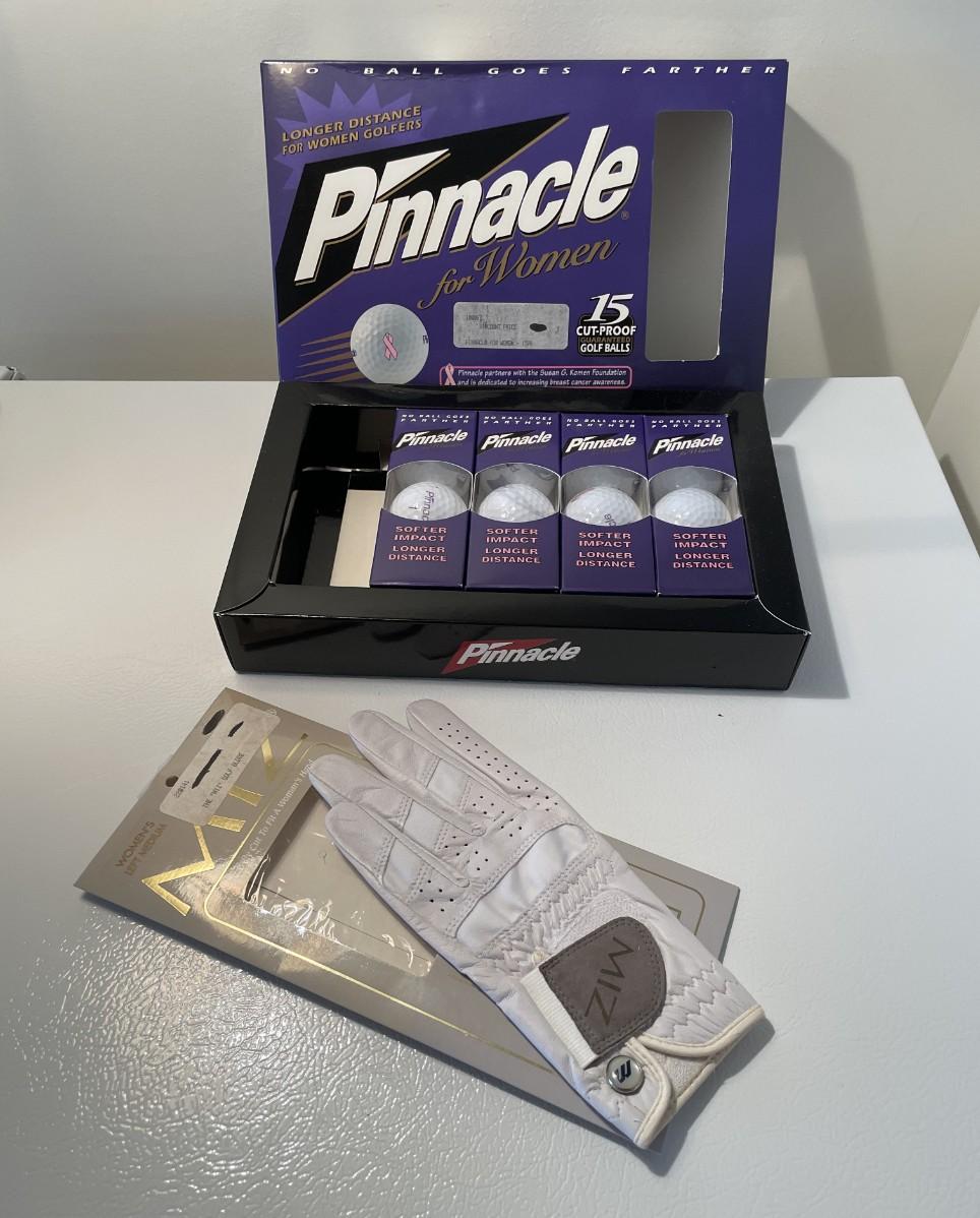 All of these are never used. The glove is a left hand, medium and there are 4 sets of 3 golf balls.
