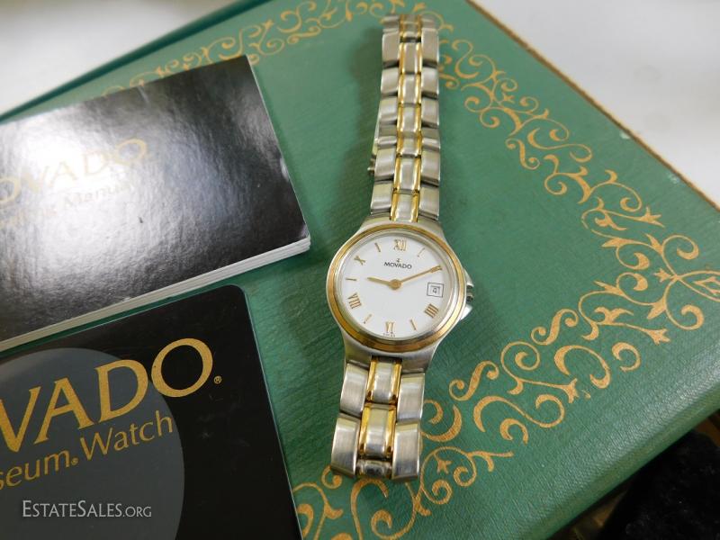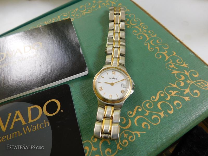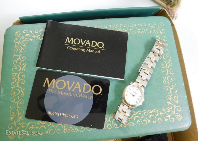 Woman's Movado Museum watch from Bloomingdale's. Original receipt from 1994 shows $900.00. Two tone band with date. Shipping Available.