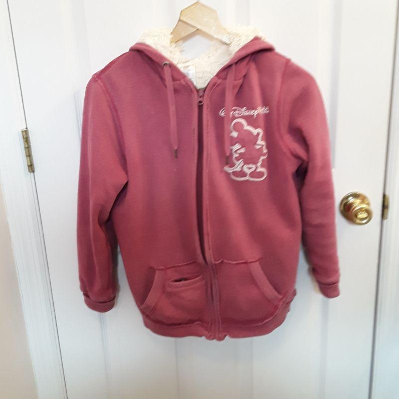 Woman's Pink Hoodie Faux White Fur Lining - size small Disney Parks Authentic original