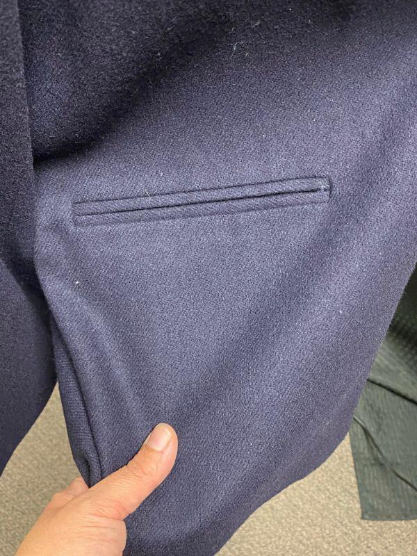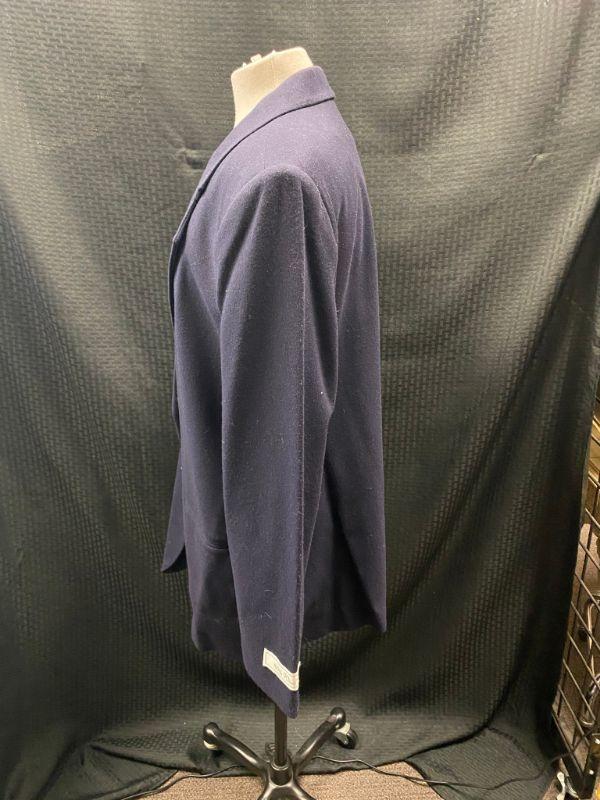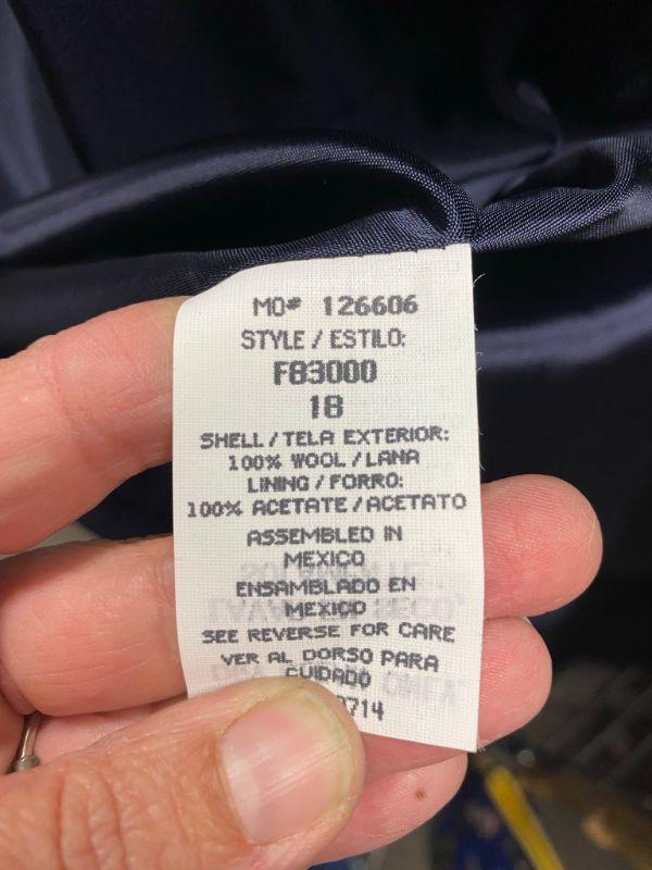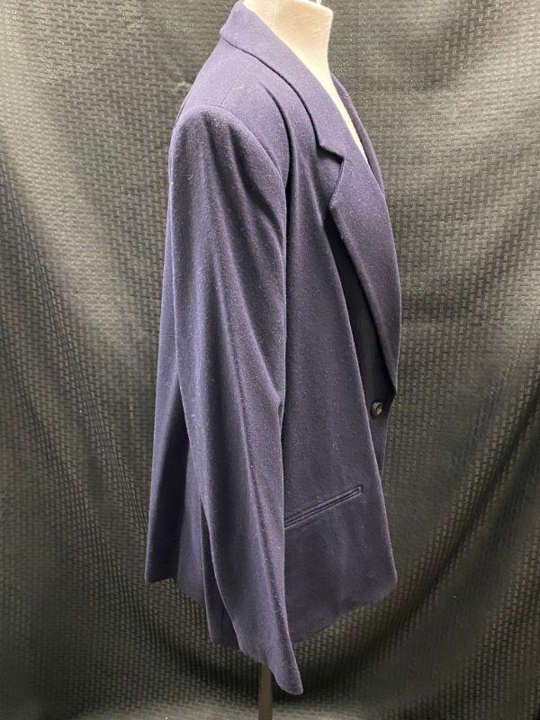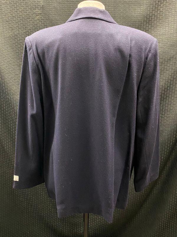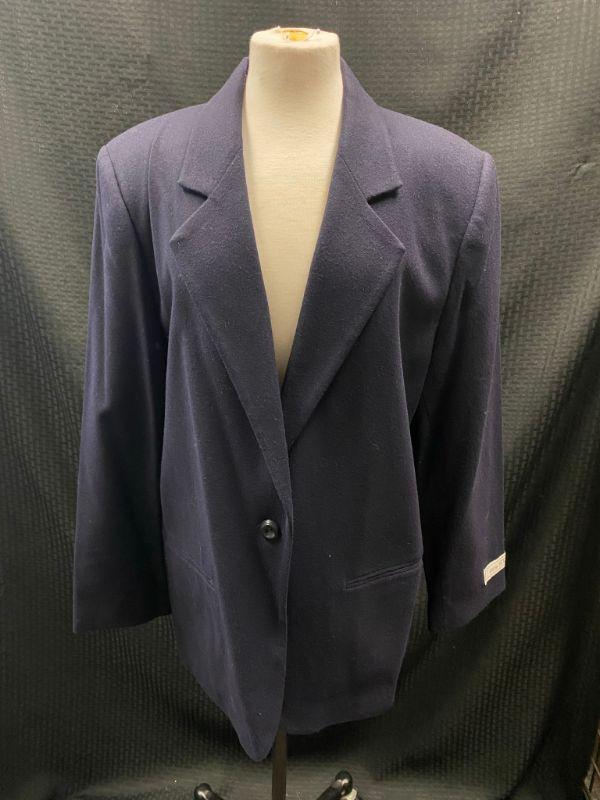 Woman's navy blue blazer by Sag Harbor. 100% wool. Single button closure, false pockets. Size 18. Good condition, no holes, spots, or snags. May be dusty from storage.