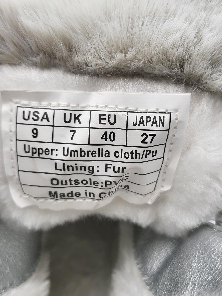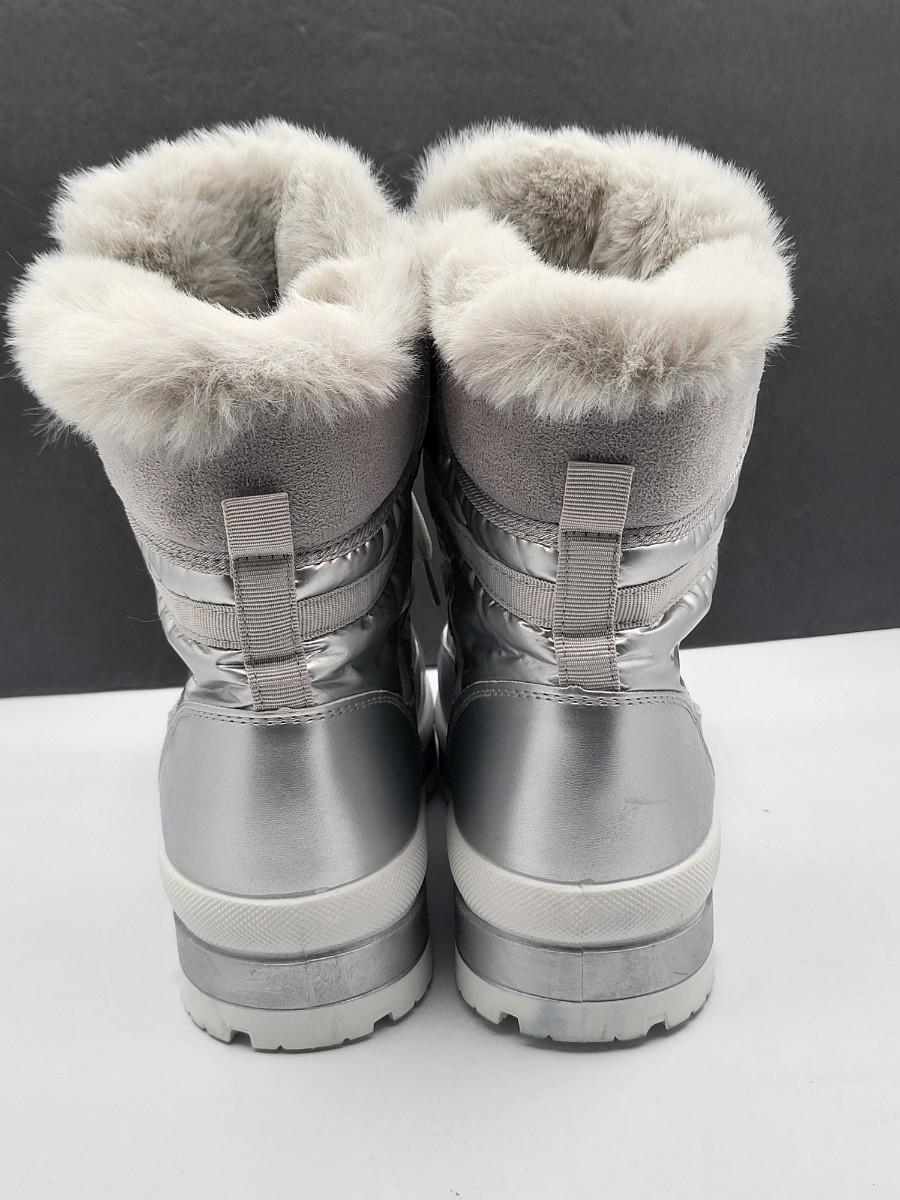 Above the ankle, fur lined, waterproof, silver color winter boots. Women's size 9. Brand unknown. Never worn.