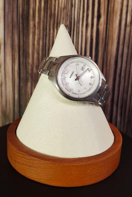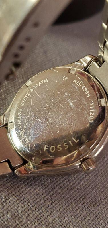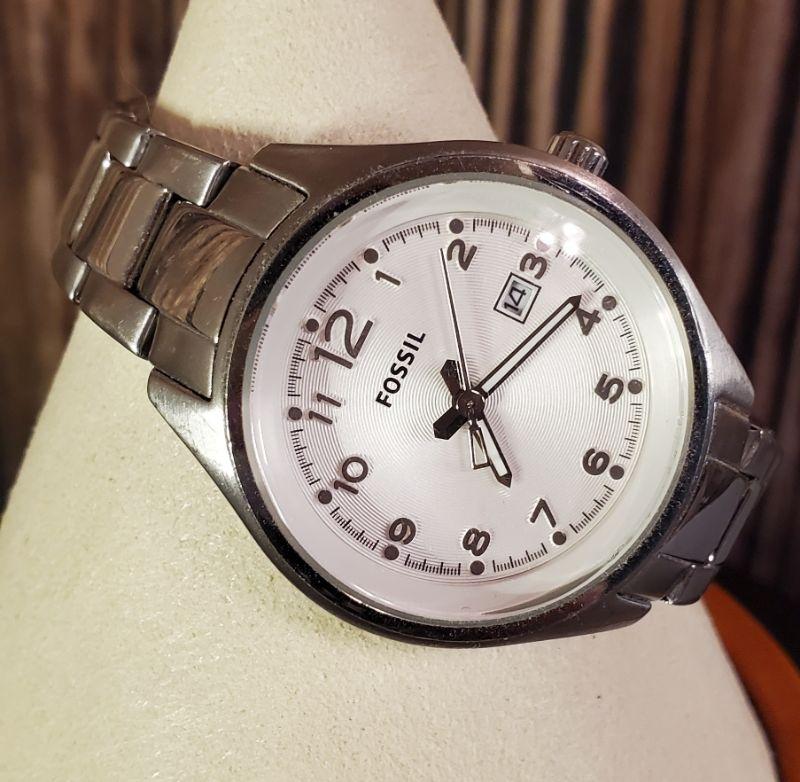 Pre-owned AM4364 FOSSIL women's watch Silver White 32mm 7" band with date.
