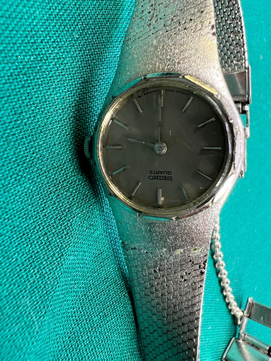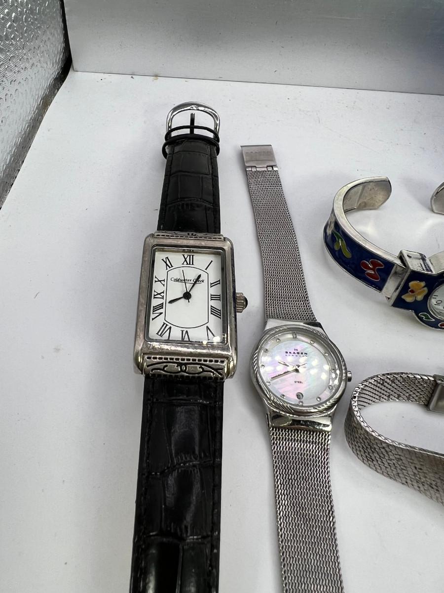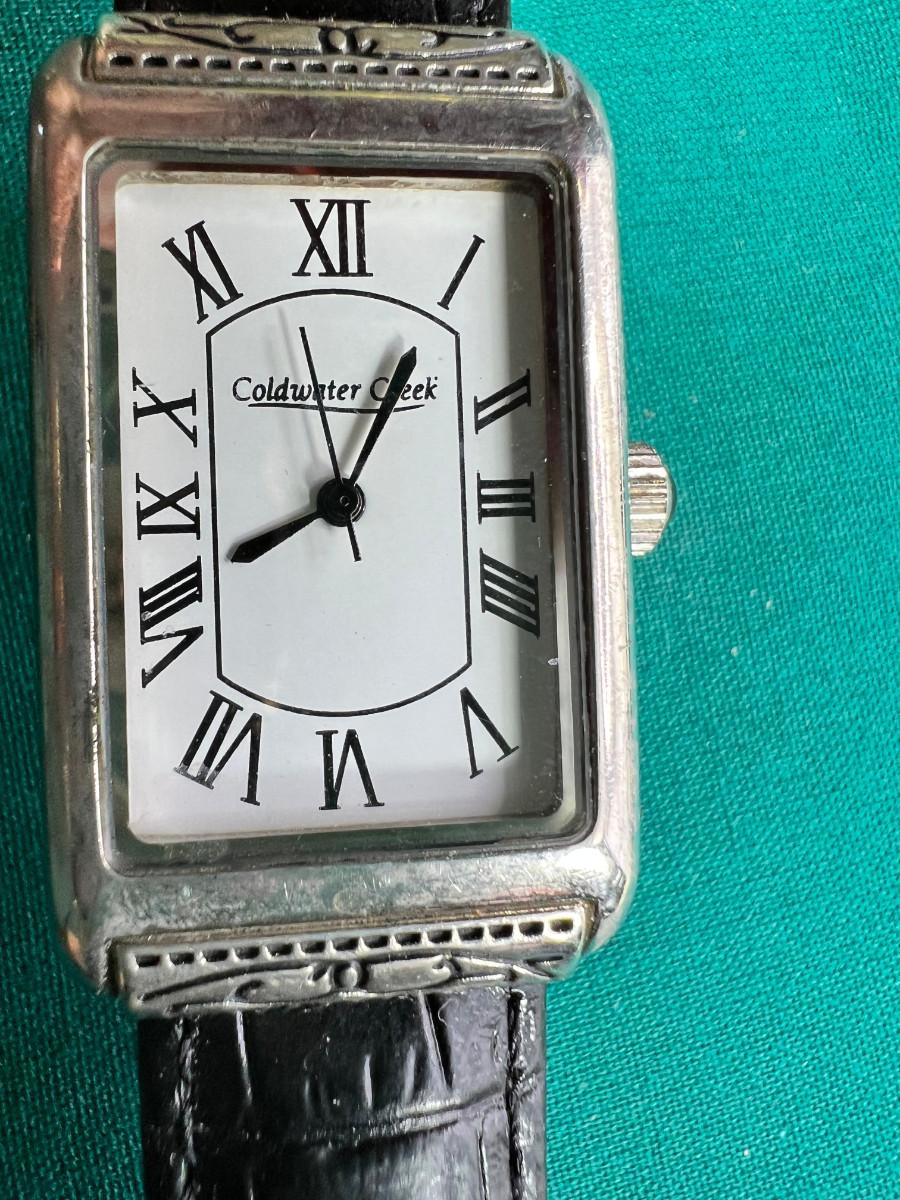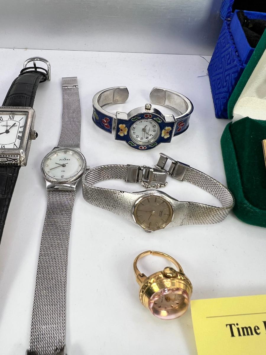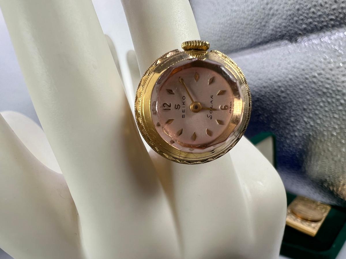 3 woman's wrist watches and 1 watch ring, 1 watch bracelet, and a 24K GF money coin clip.