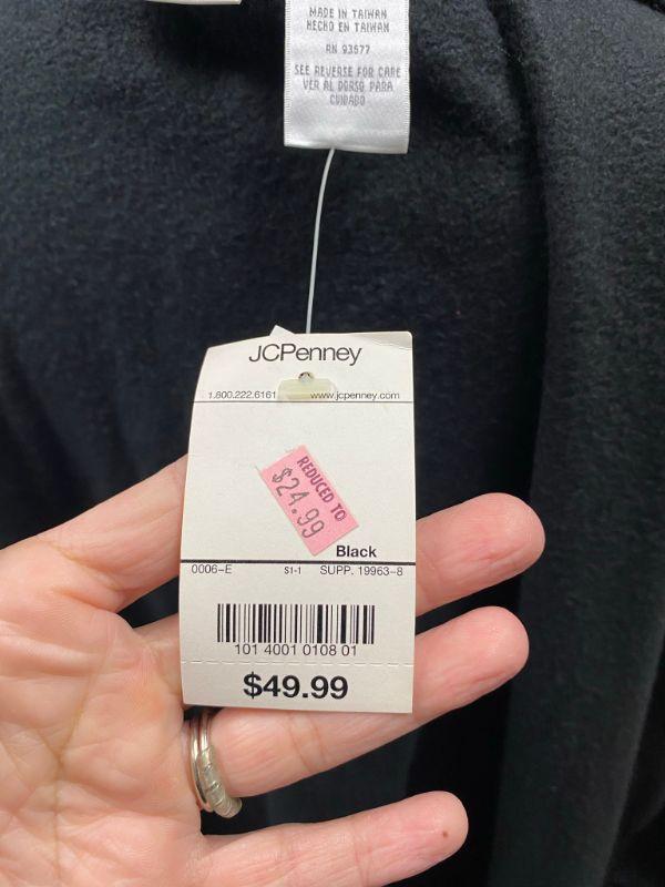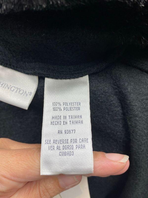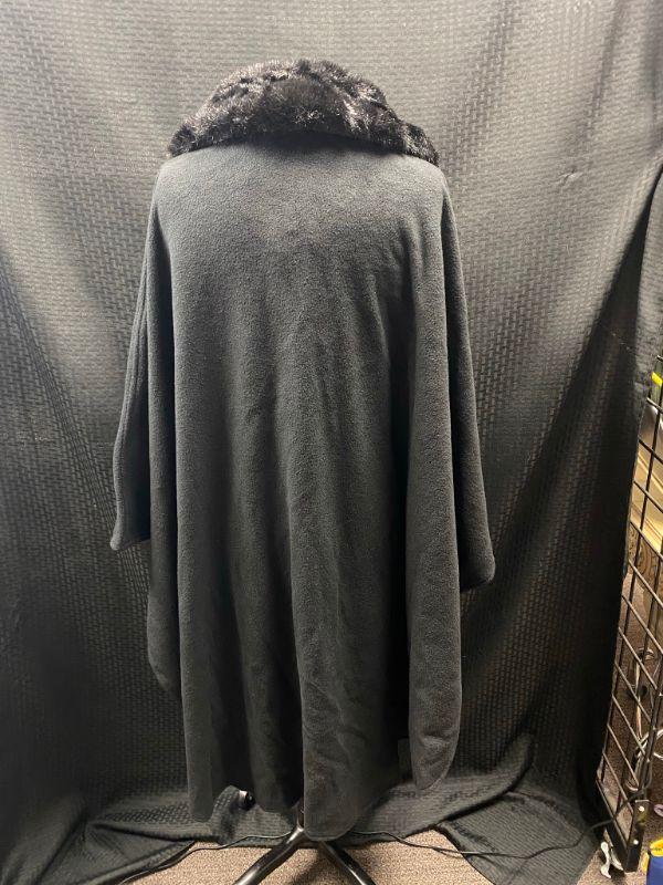 Worthington woman's fleece cape. Faux fur collar, double button at the neck. One Size Fits Most. Does have stitch in each side to create sleeves. No pockets. 100% polyester. Still has original tags on it.