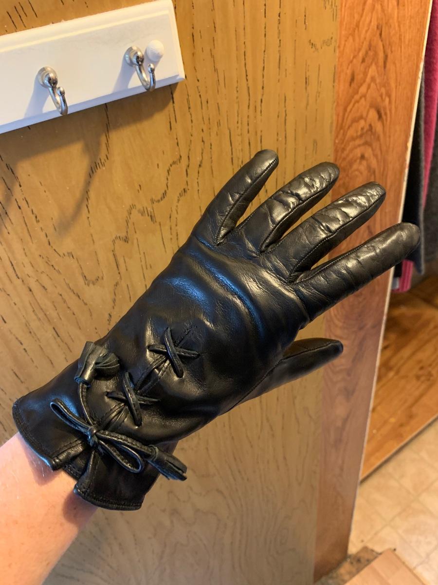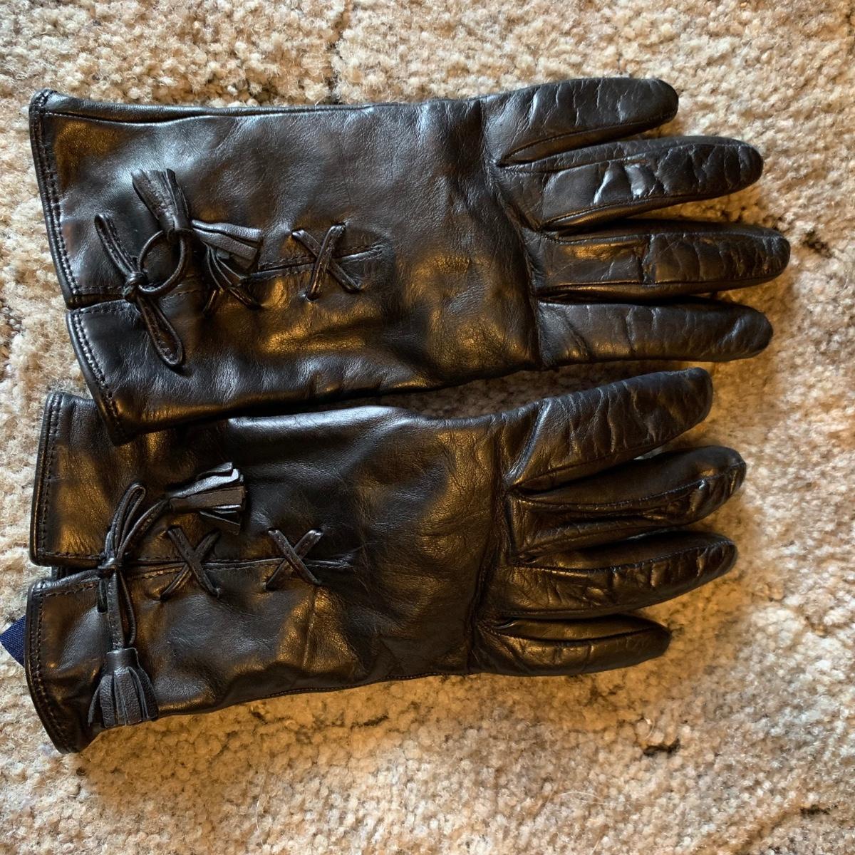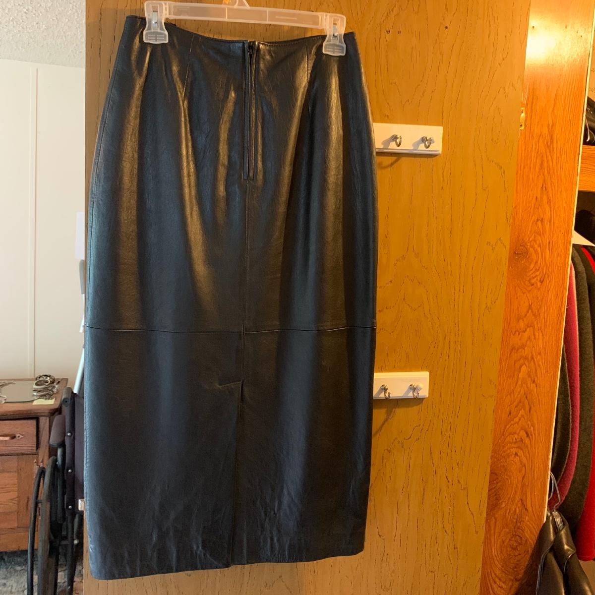 Two Ann Taylor 100% leather jackets, one button down black and one zippered dark brown, both size M. One pair of Ann Taylor genuine sheepskin gloves with yak, wool, & cashmere lining, size M. One black 100% leather Casual Corner skirt, with front and back slits and a zipper closure, size 6. All in very good condition. Shipping available.