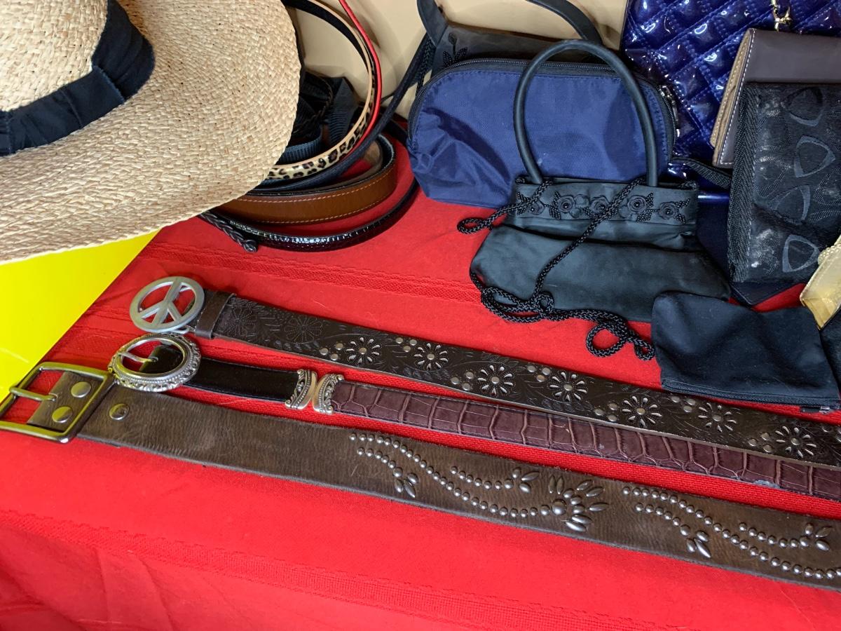 An assortment of women’s accessories including belts, hats, purses and jewelry. All in good condition. Includes brands like Liz Claiborne, Anne Klein and more! Includes one 14k whale fin. Shoes are women’s size 9