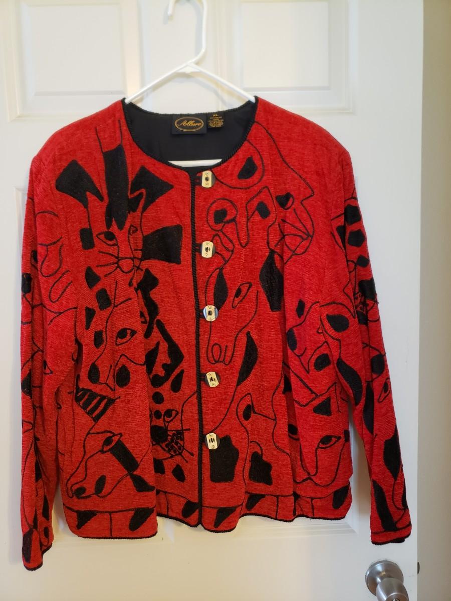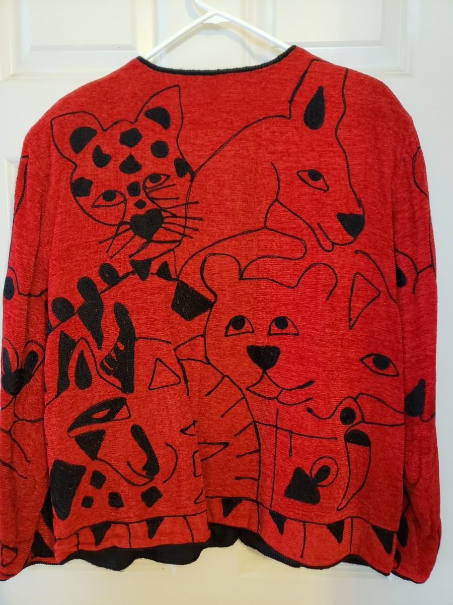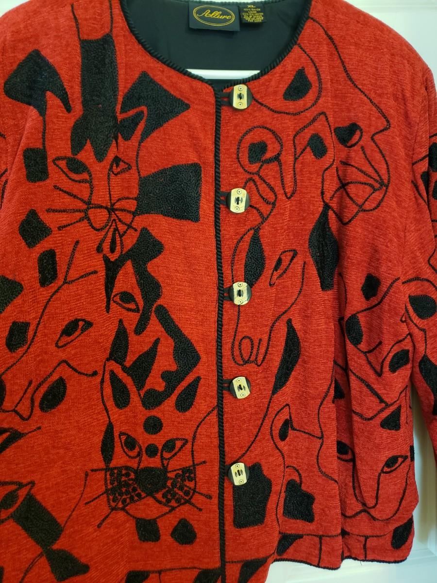 Women's Allure Red & black embroidered animal print jacket Size XL