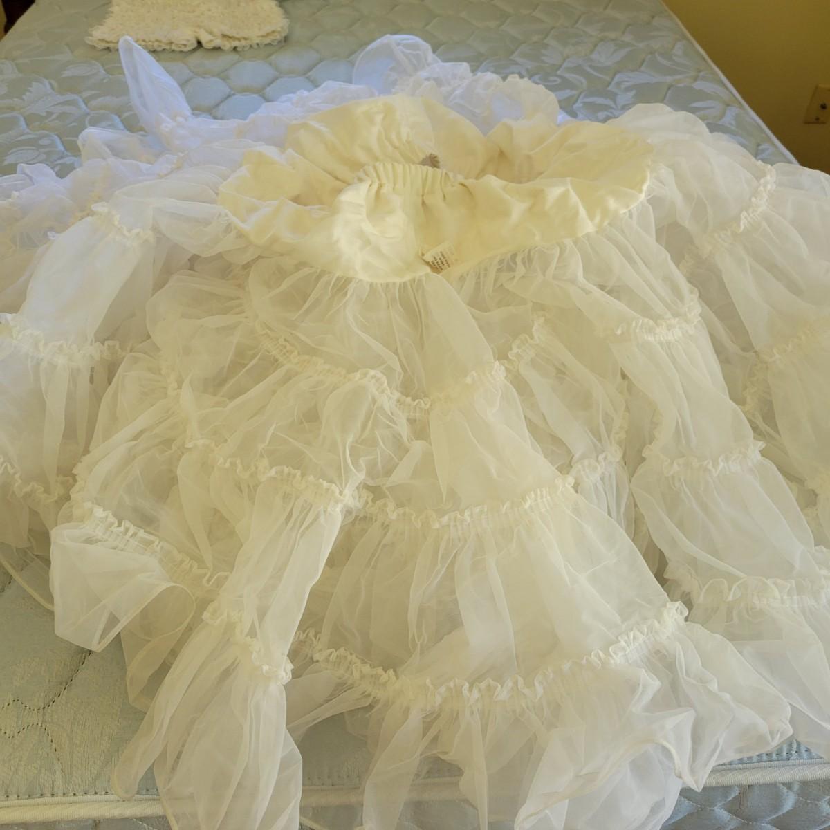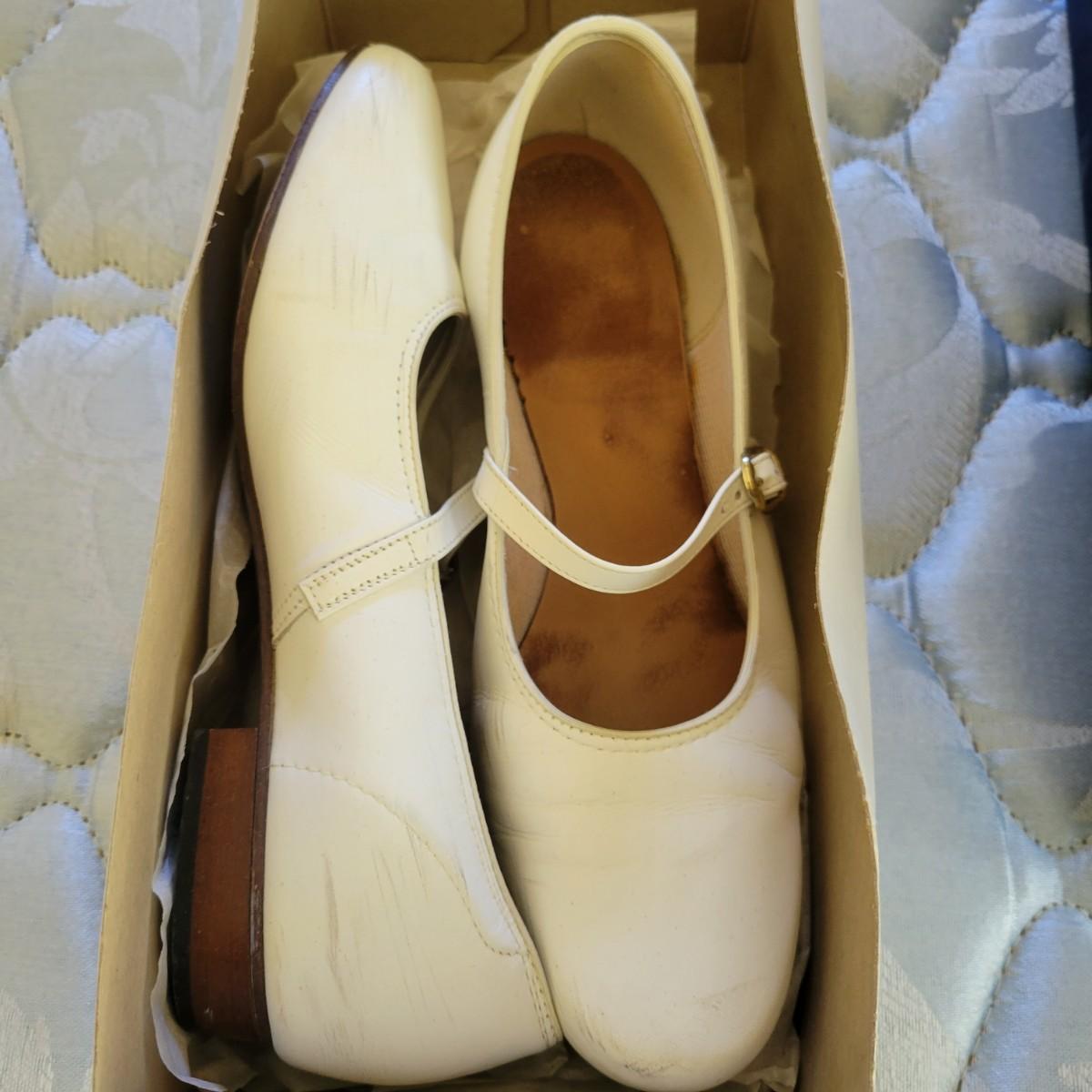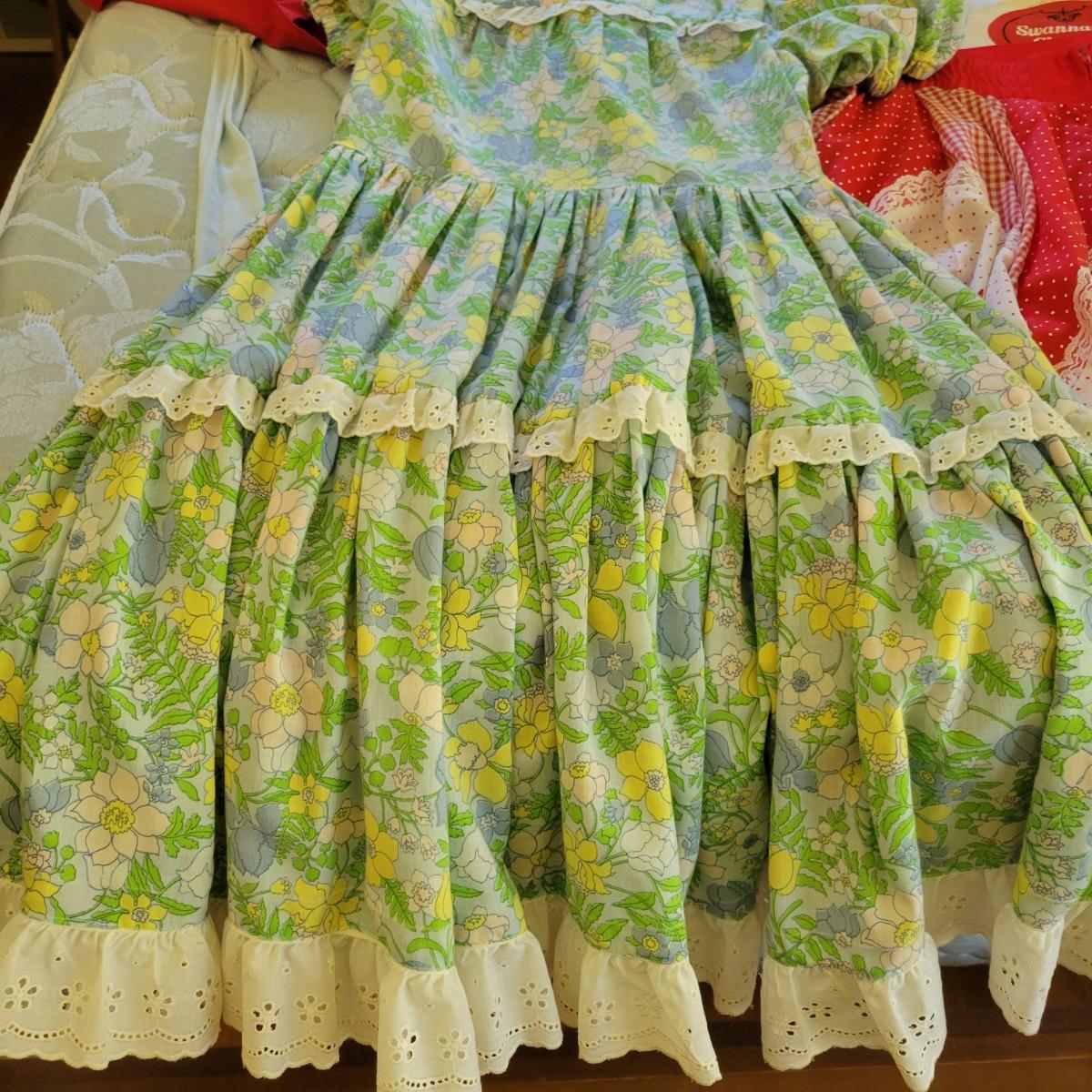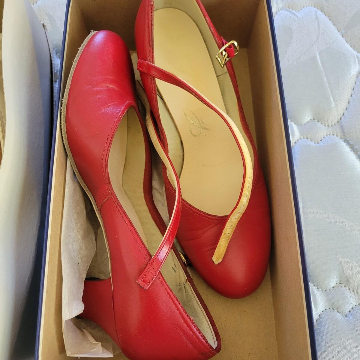 An assortment of women's and men's square dance clothes in good condition. One white shirt amd the red shirt are the men's pieces and are XL. Women's clothes are multiple skirts, a dress, some ruffled bloomers and a ruffled petticoat. Shirts are sized M and the skirts and dress appear to be handmade and do not include sizes. Also includes two pairs of shoes size 9 1/2;M. Local pickup only