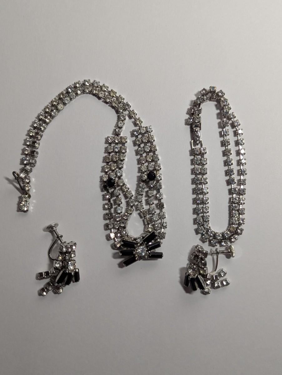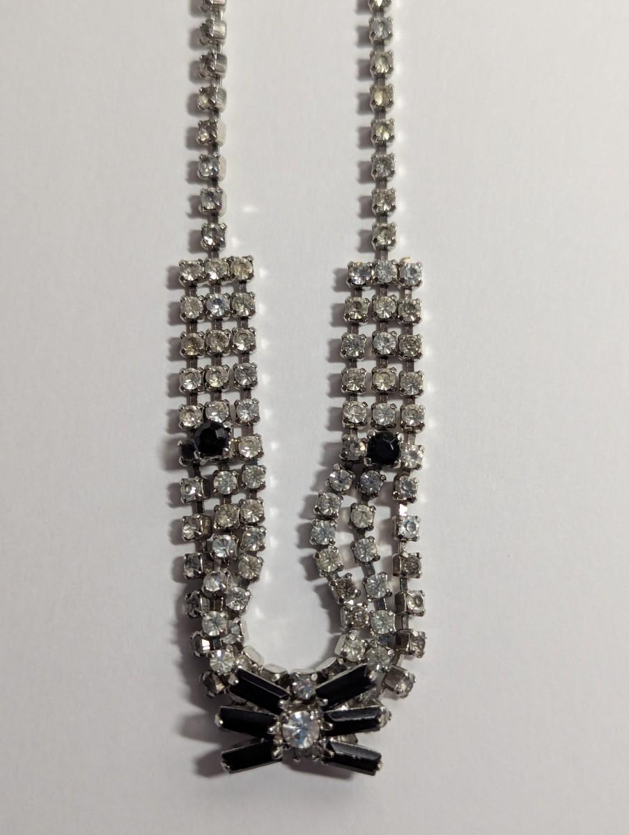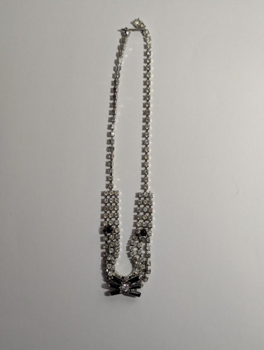 Women's Art Deco Rhinestone Link Black Crystal Necklace