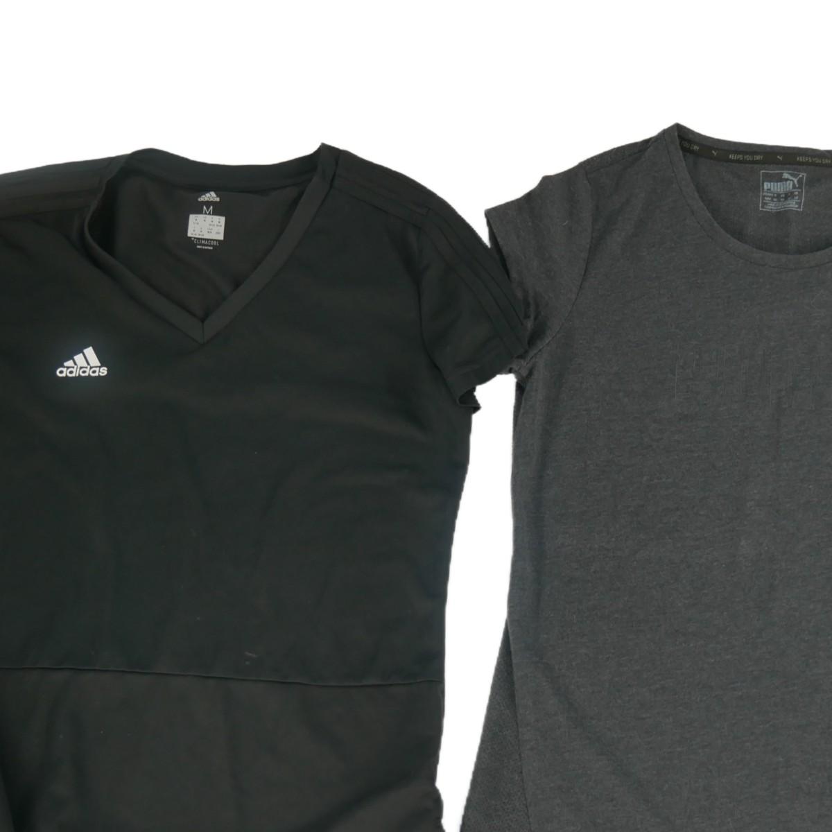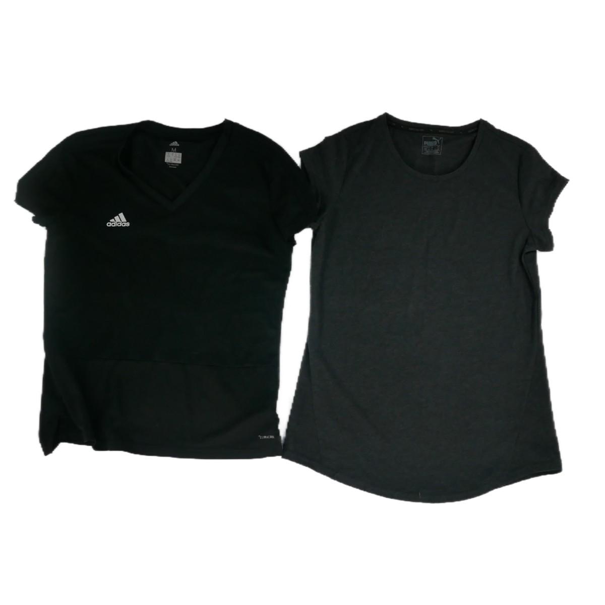Adidas and Puma women's athletic tops in size M. Adidas top has small stain.