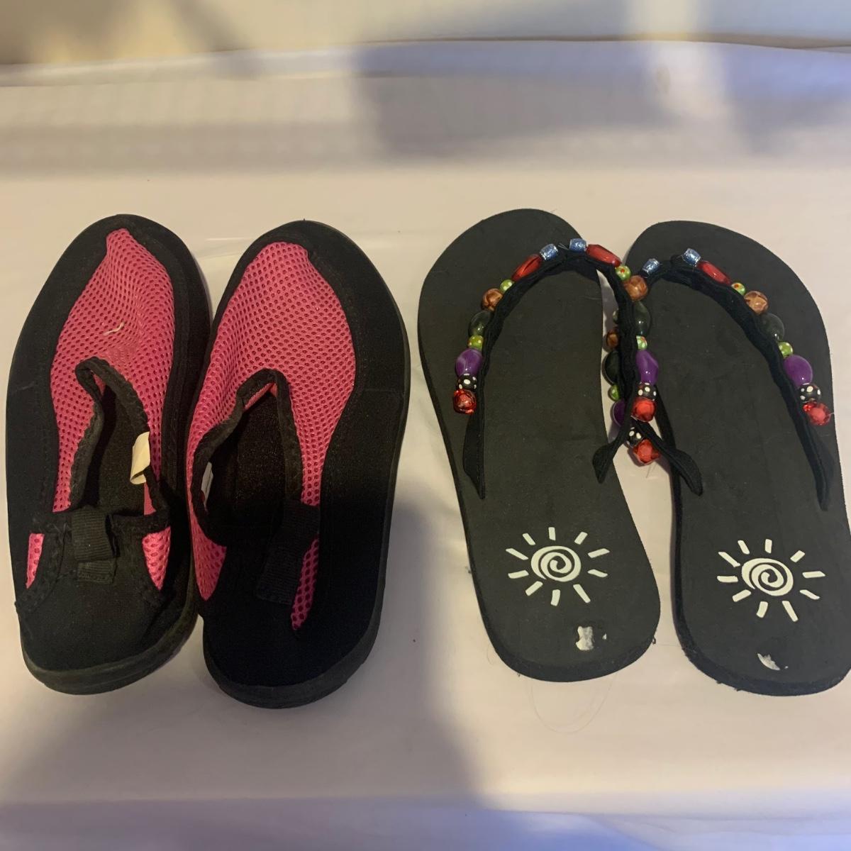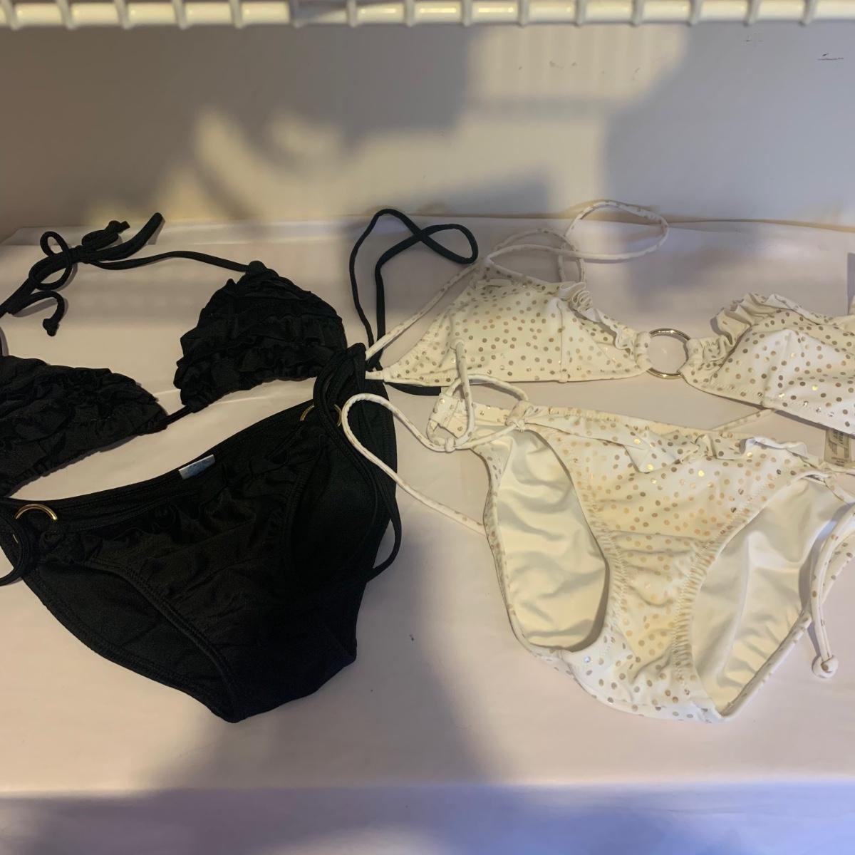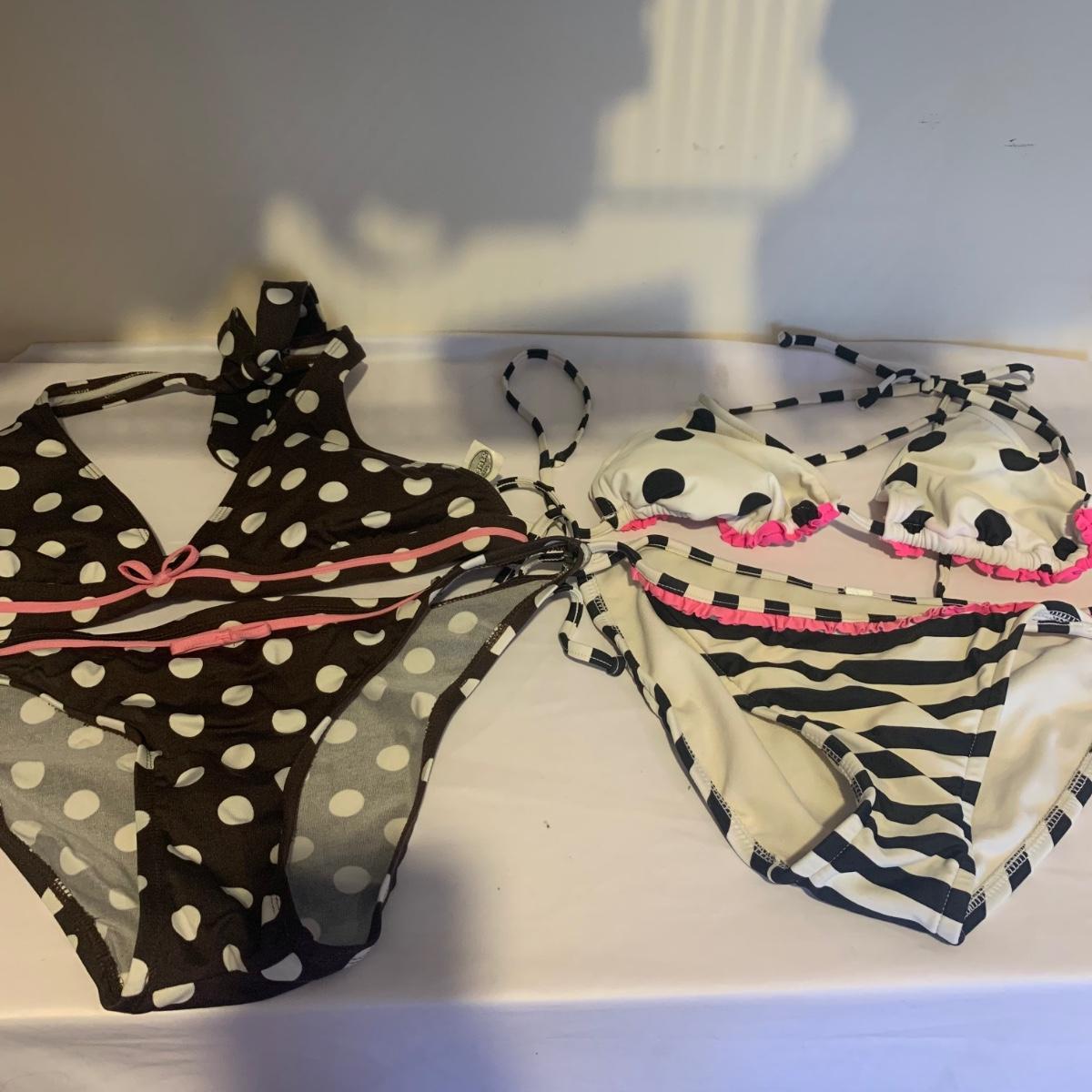 This lot includes a variety of women’s bikinis and one pieces, two Victoria Secret tote bags, three coverup dresses, water shoes, and flip-flops. Some of the pieces have signs of wear and discoloration (see photos). Included brands are Venus, Victoria Secret, Ace Fashion, Kim Rogers, Summer Girl, and more. Sizes range from women’s Small to XL. The shoes are women’s size 7-8. The largest tote bag measures about 16in x 18in. Shipping available.