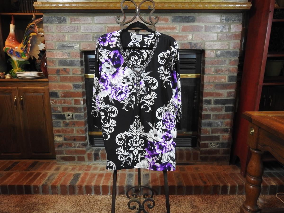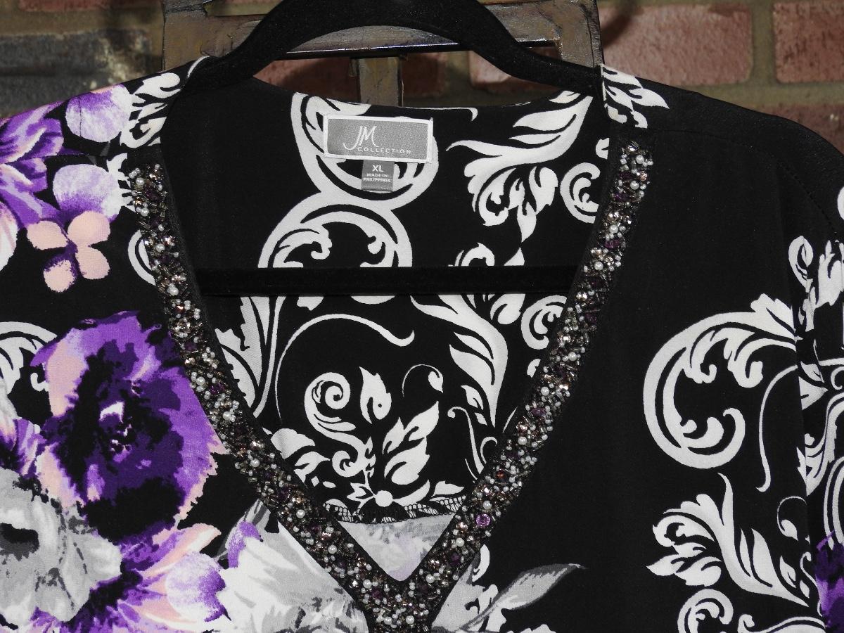 From JM collection. Women's beaded blouse, floral print. Size XL. In good used condition.